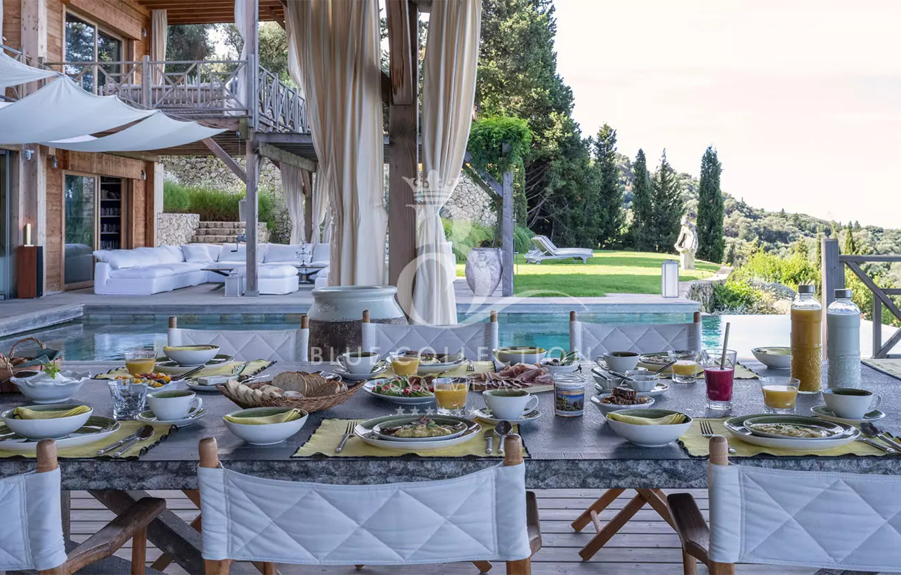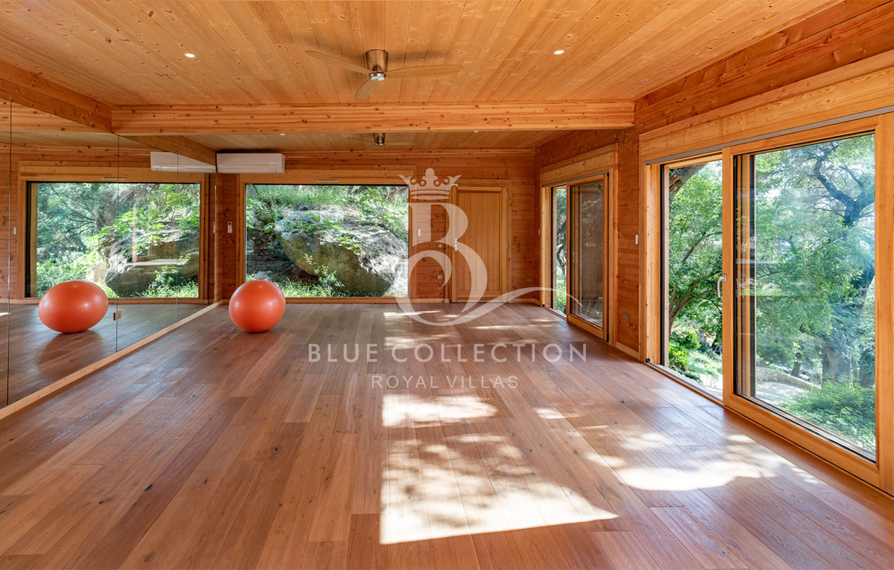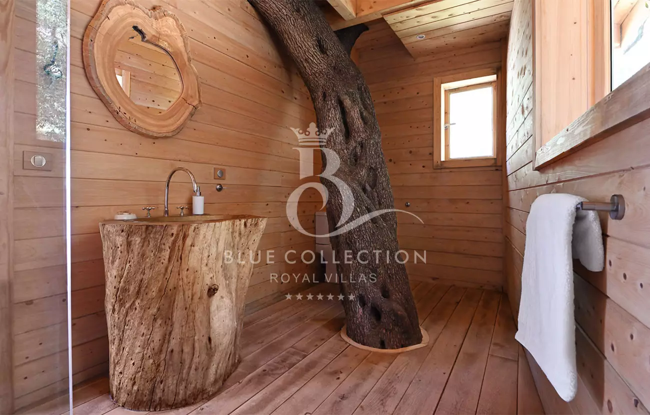 Expertly crafted in smooth wood, the estate’s design blends effortlessly with its natural surroundings while providing all the modern comforts expected in a luxury villa.