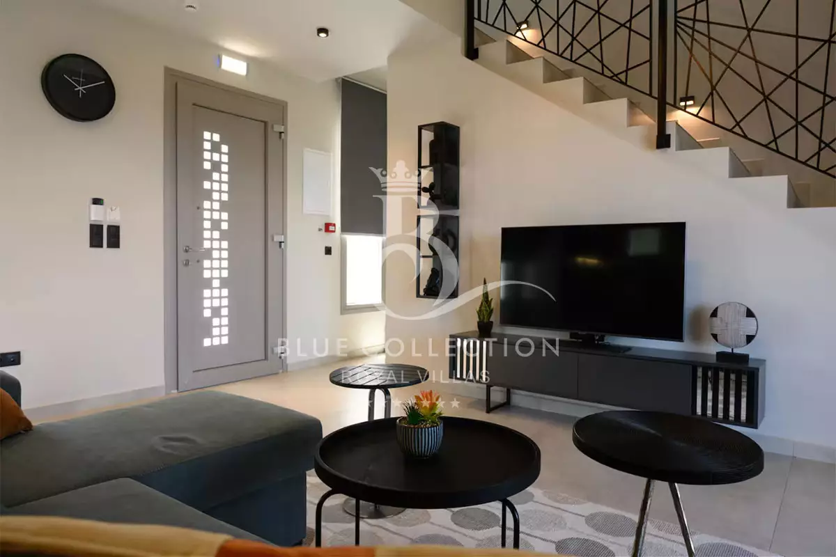 Surrounded by the lush beauty of olive trees, Villa CRF-37 offers a serene and idyllic atmosphere. The exterior is adorned with a pristine pool, inviting you to relax and unwind in its refreshing waters.