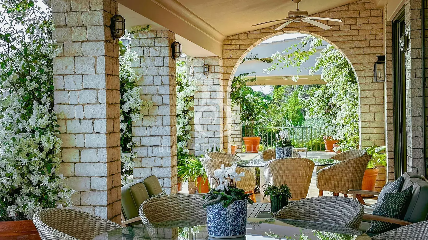 The extensive gardens, spacious outdoor terrace, and pool area, adorned with vibrant flowers, serve as ideal locations for ceremonies, cocktail drinks, and receptions. Imagine exchanging vows in a beautiful garden at sunset, followed by drinks overlooking the sea, and then moving on to an alfresco dinner by the pool under twinkling fairy lights.