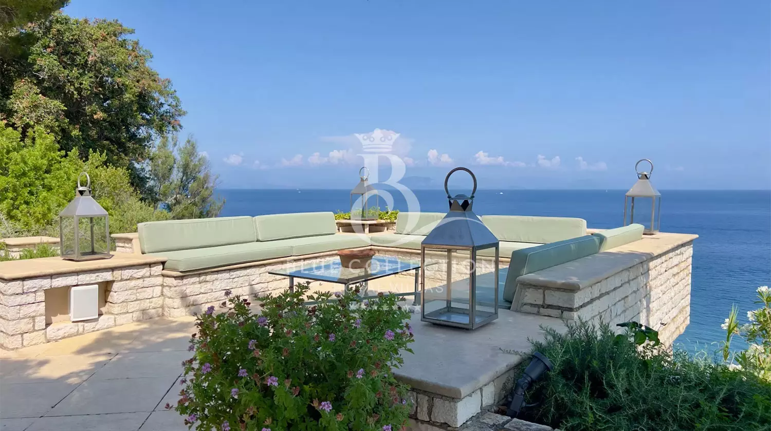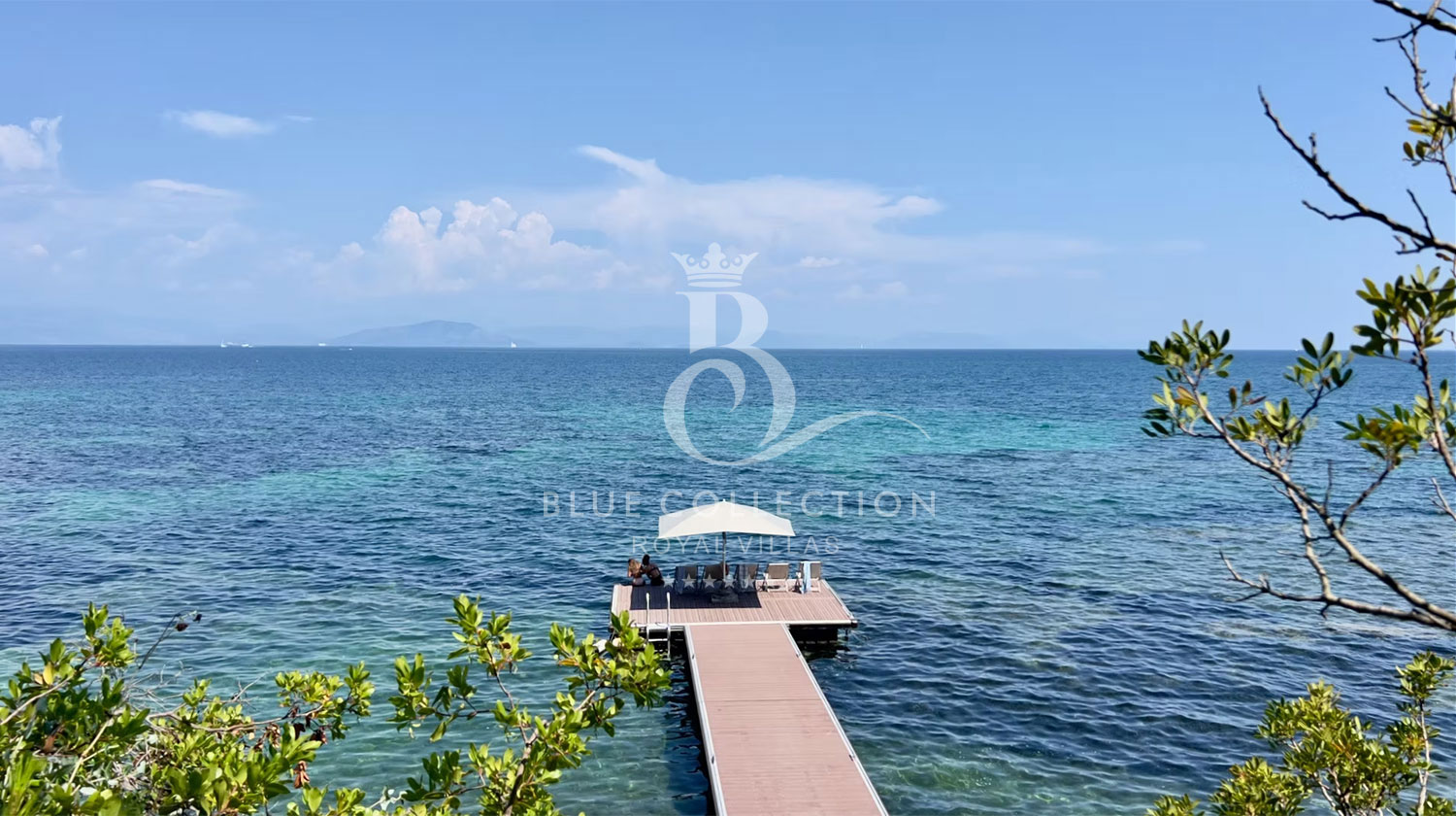- 70 sq.m. main terrace, 200 sq.m. swimming pool, pool house, 5 al fresco dining areas, three garden areas, direct access to the sea, beach terrace and a private 16-metre pier