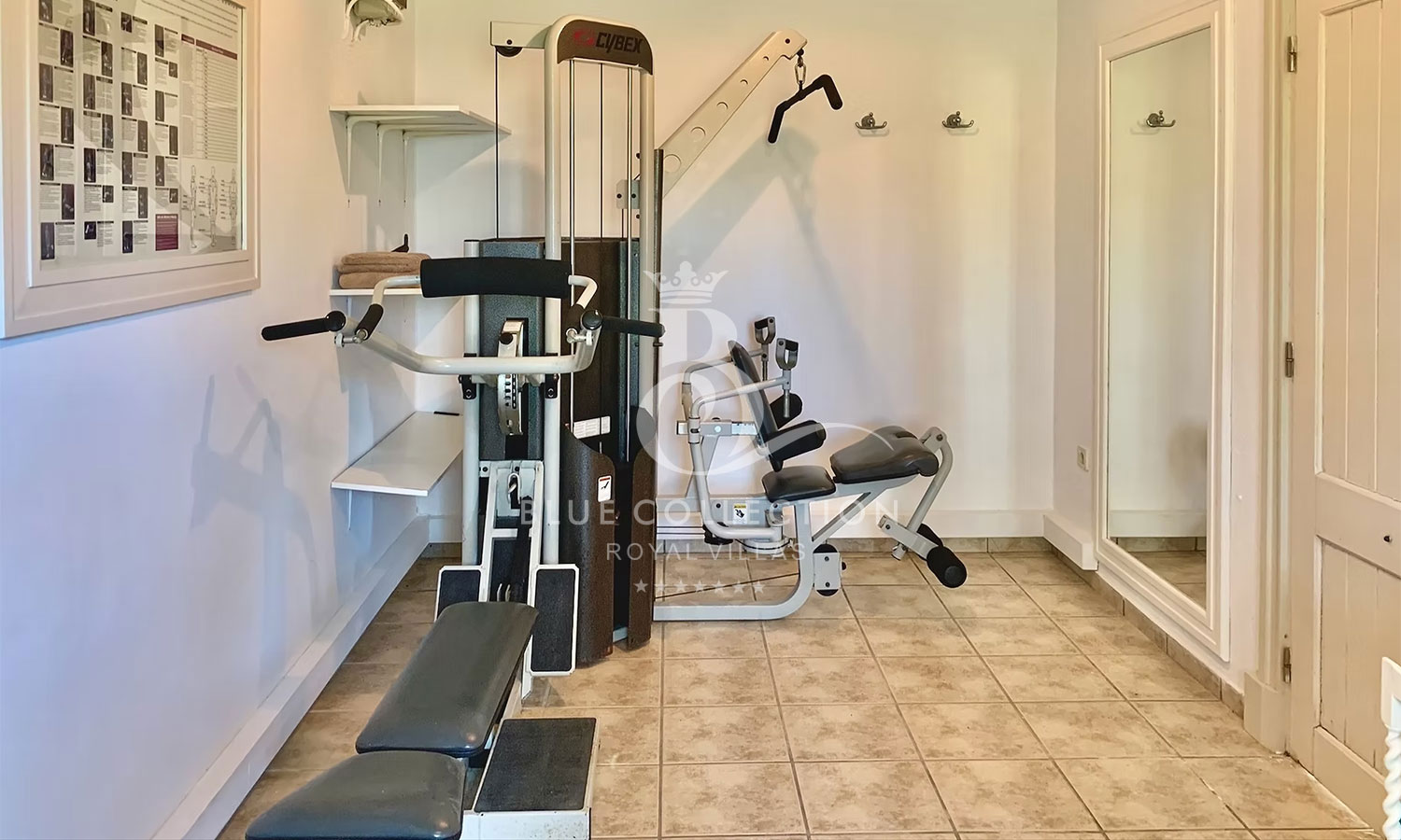 - One double bedroom ensuite with direct access to the pool, gym with treadmill and multi-exercise training machine
