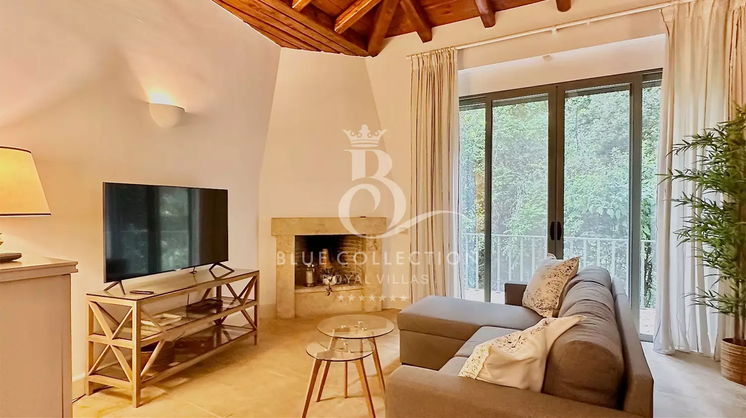Embraced by a verdant forest boasting a symphony of hues, the Villa provides a unique sanctuary, a retreat where privacy reigns supreme, all while being a mere 10-minute drive from the vibrant heart of Corfu town.