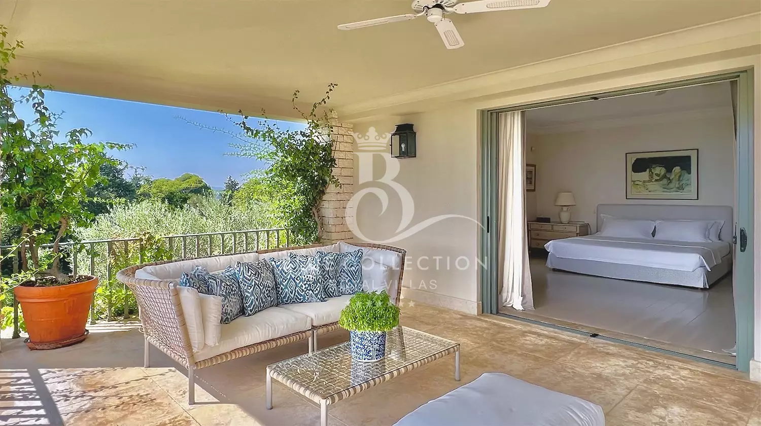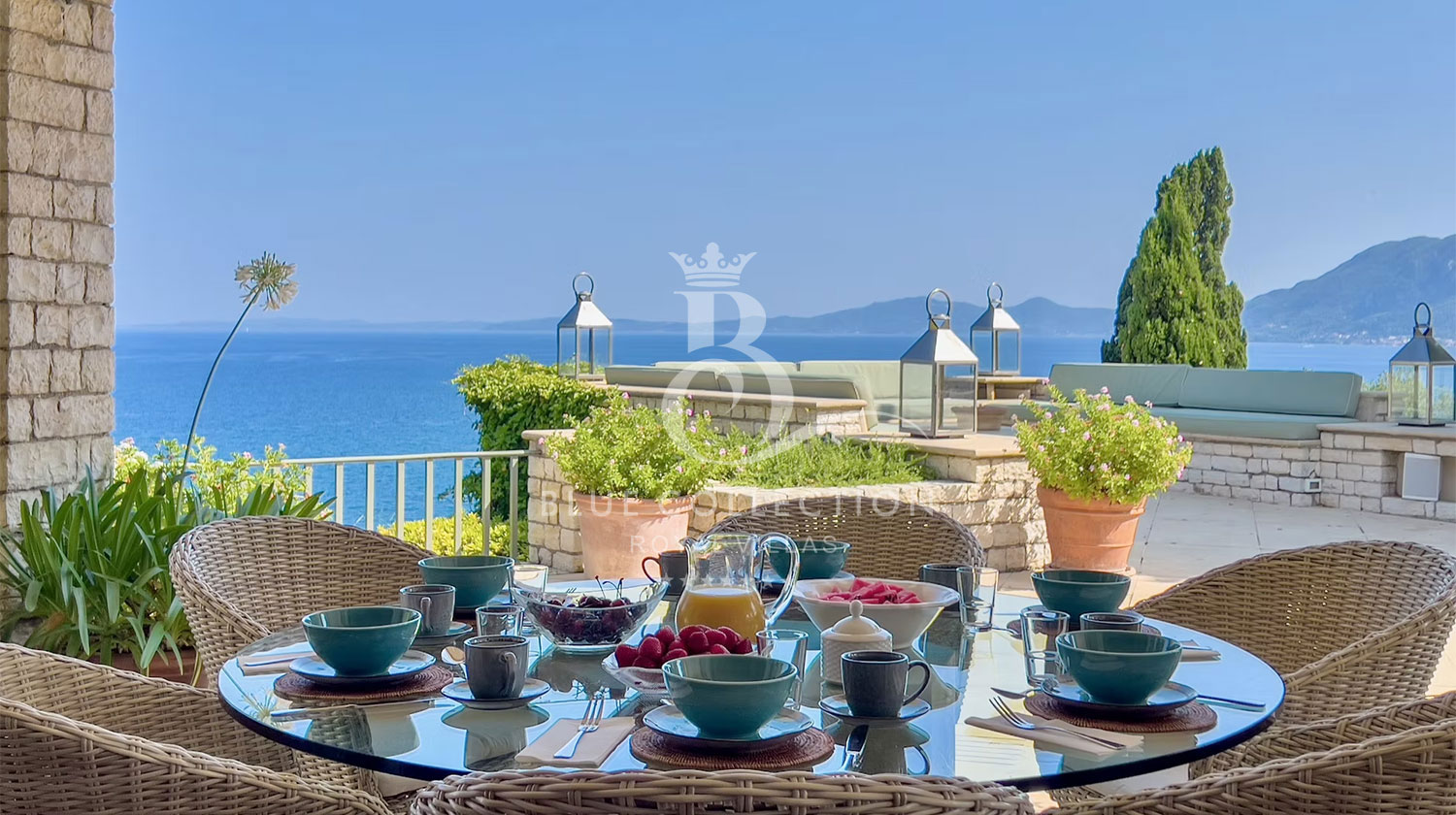 Perched with grace, the estate commands panoramic views of the Ionian Sea and Pontikonissi, the enchanting Mouse Island, casting a spell of tranquility over its visitors.