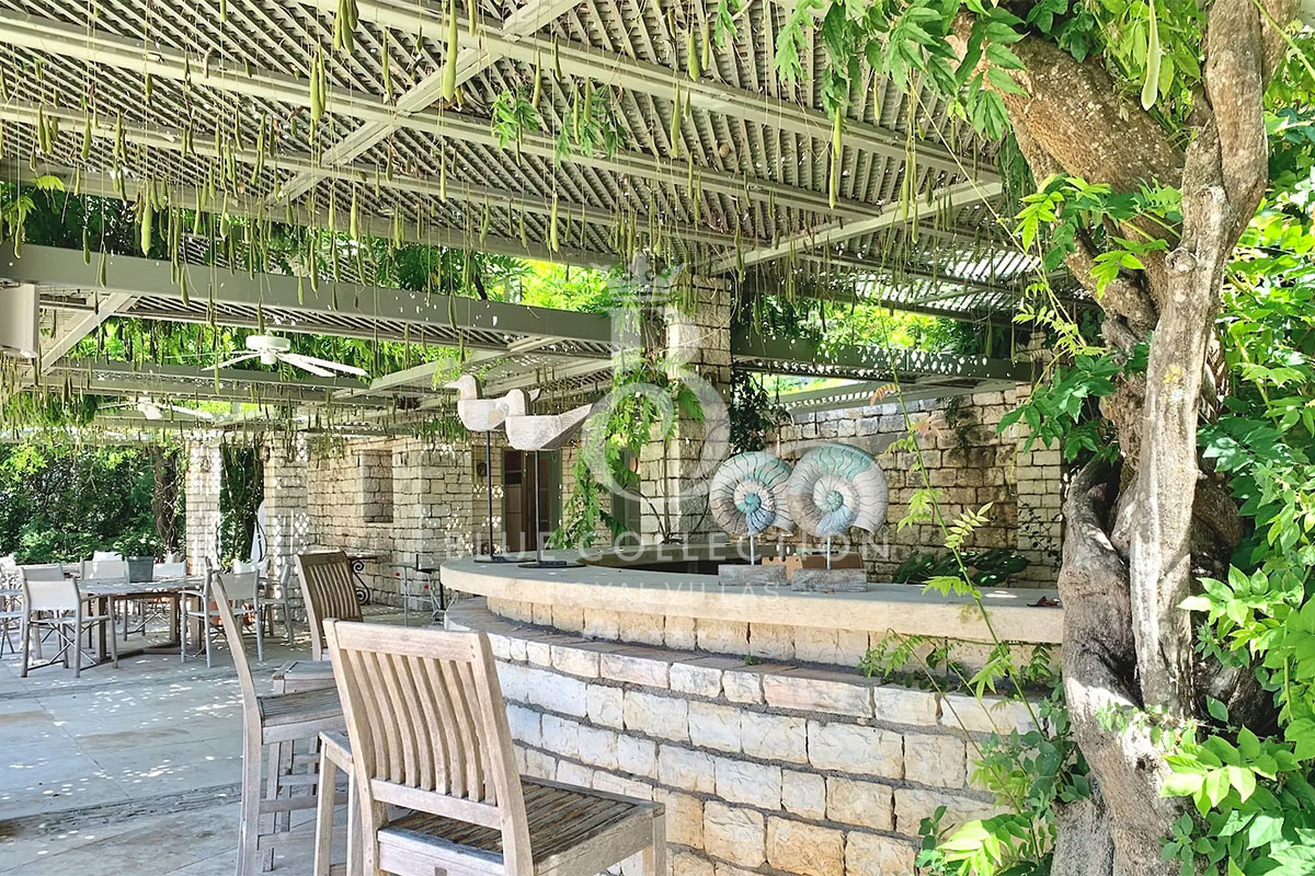 Embraced by a verdant forest boasting a symphony of hues, the Villa provides a unique sanctuary, a retreat where privacy reigns supreme, all while being a mere 10-minute drive from the vibrant heart of Corfu town.