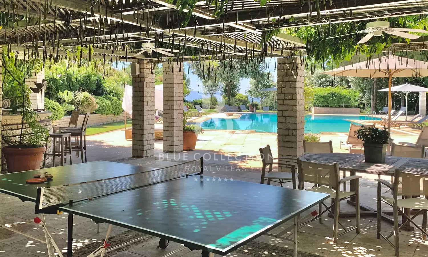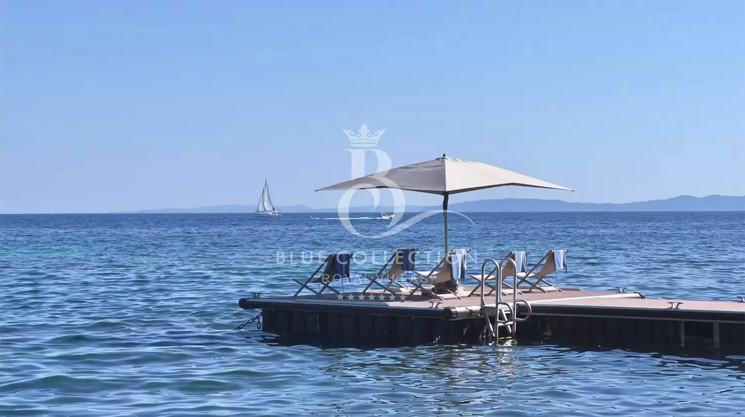 - 70 sq.m. main terrace, 200 sq.m. swimming pool, pool house, 5 al fresco dining areas, three garden areas, direct access to the sea, beach terrace and a private 16-metre pier