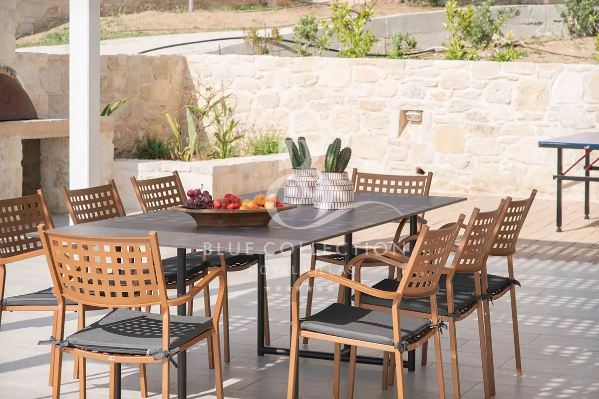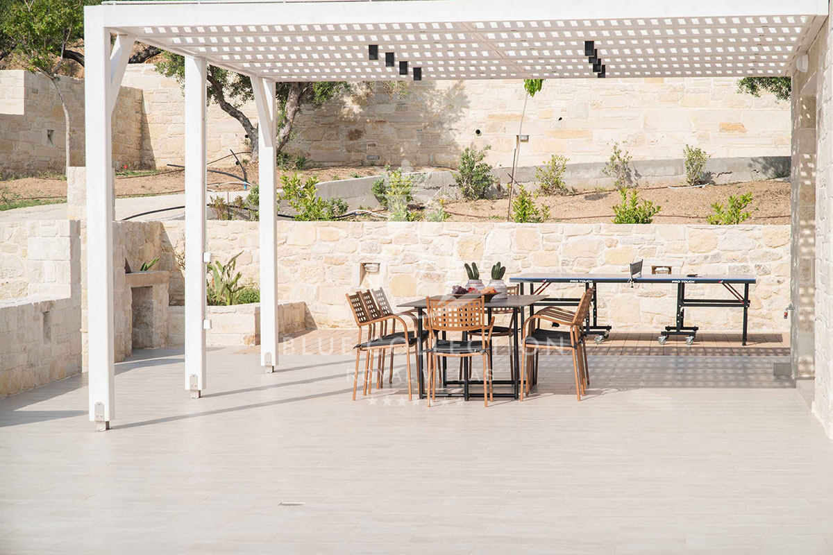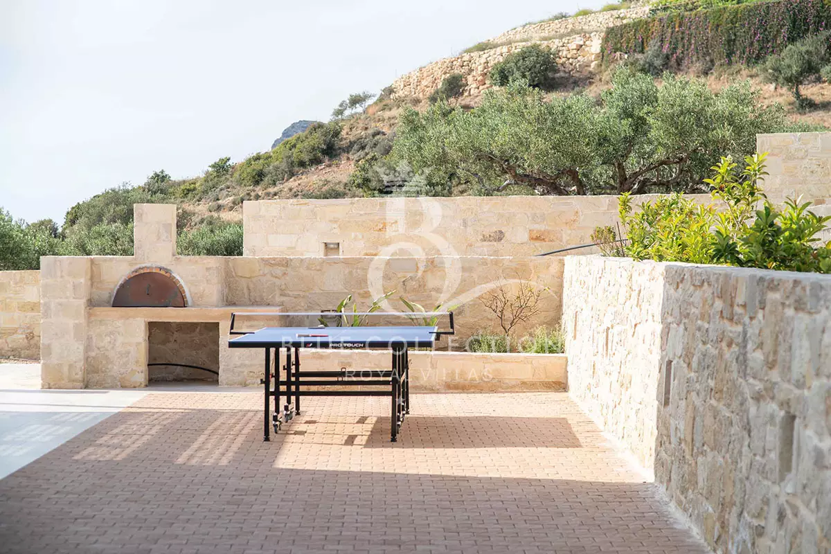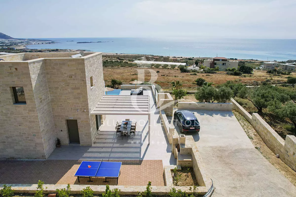 The best part of the residence is the refreshing outdoor private pool where you can have unspoiled moments of relaxation on the sunbeds next to the pool soaking up and enjoying the Cretan sun. For more fun, you can enjoy a ping pong match with your friends and after that, you can have a glass of fine wine or a cocktail in the lounge area. The perfect location of the Villa offers proximity to the sandy beach and the crystalline waters. The perfect spot where residents can enjoy optimal habitation and a dazzling view, with a private garden lawn, and don’t miss the parking space for your cars.