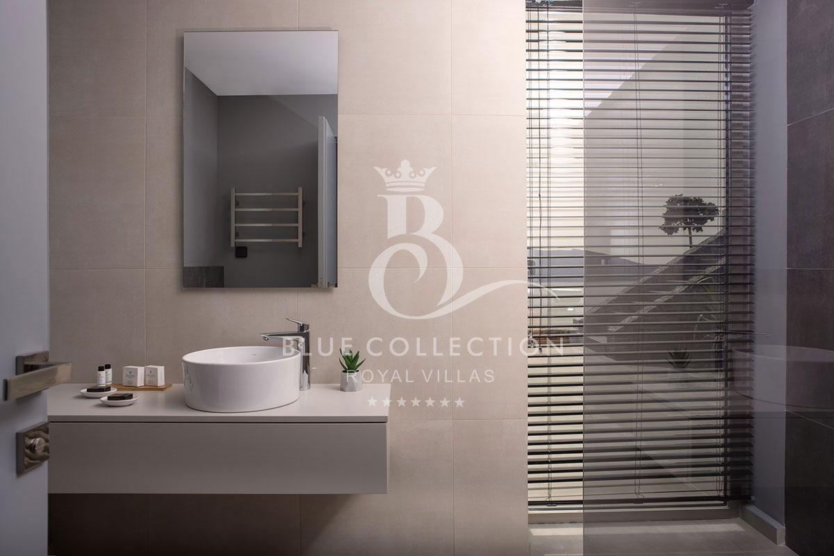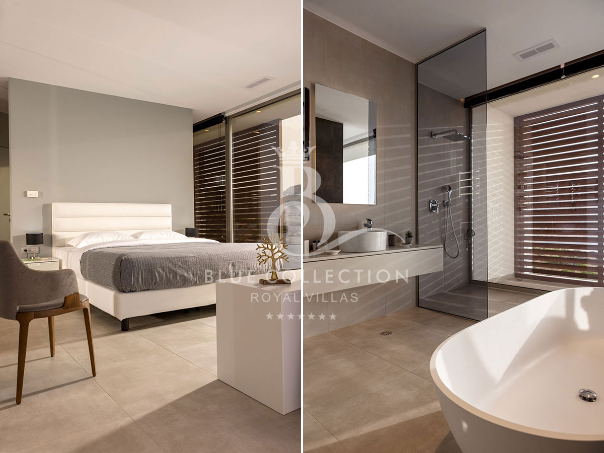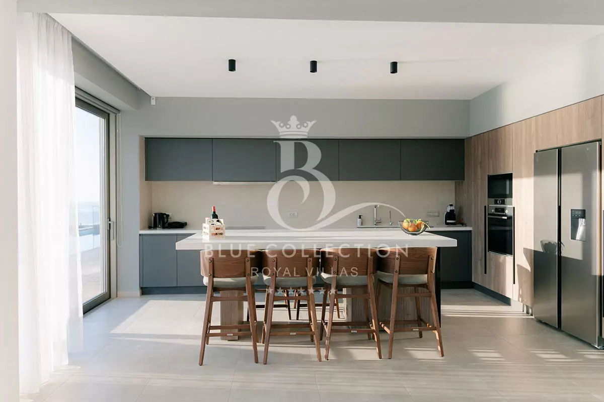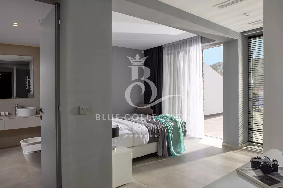 Villa CHV-28 is the largest and most exclusive Villa among a four luxury villas complex located in Agia Pelagia, surrounded by a Mediterranean garden with panoramic sea views and a private seawater swimming pool. The luxury property offers the highest standards of design, minimalism and comfort, which makes it the perfect summer home for families with children.