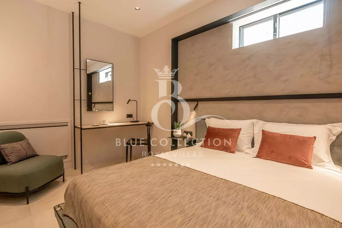 • Bedroom 4: Queen size bed (1.60 x 2.00), 32’’ satellite smart TV, A/C, desk, mountain and sea view from the balcony