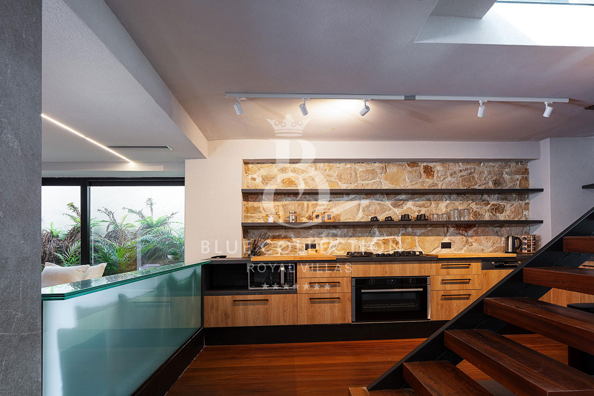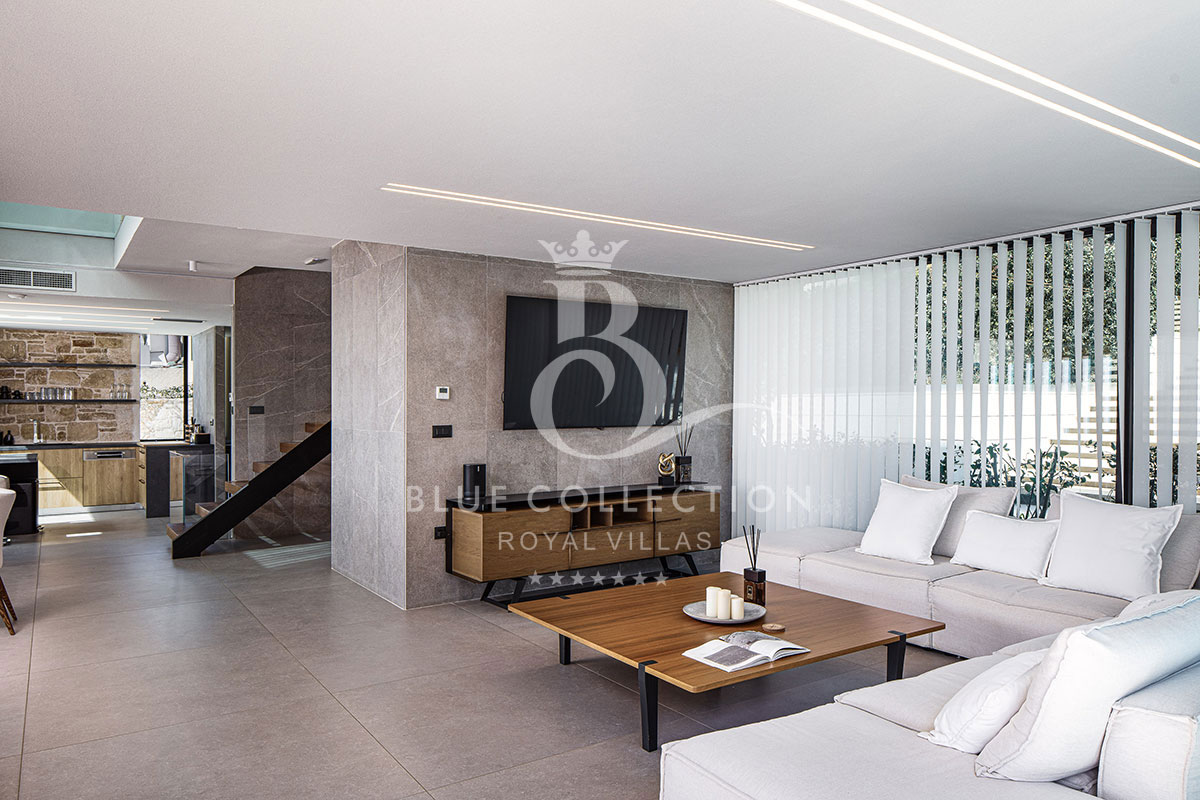 The lower floor of Villa CRT-34 opens directly into a stunning open plan area, created with your utmost relaxation in mind. This carefully designed space for entertainment, recreation and relaxation will appeal to all who seek a moment of self-care and wellness during their holiday.