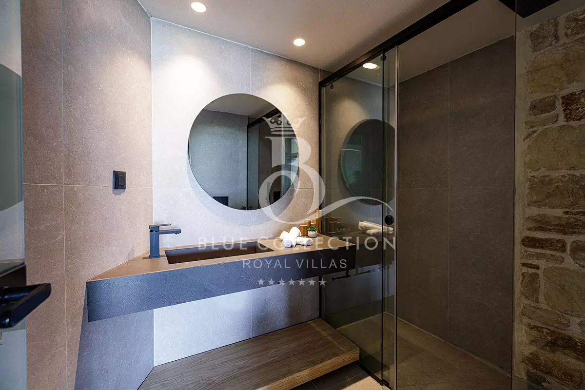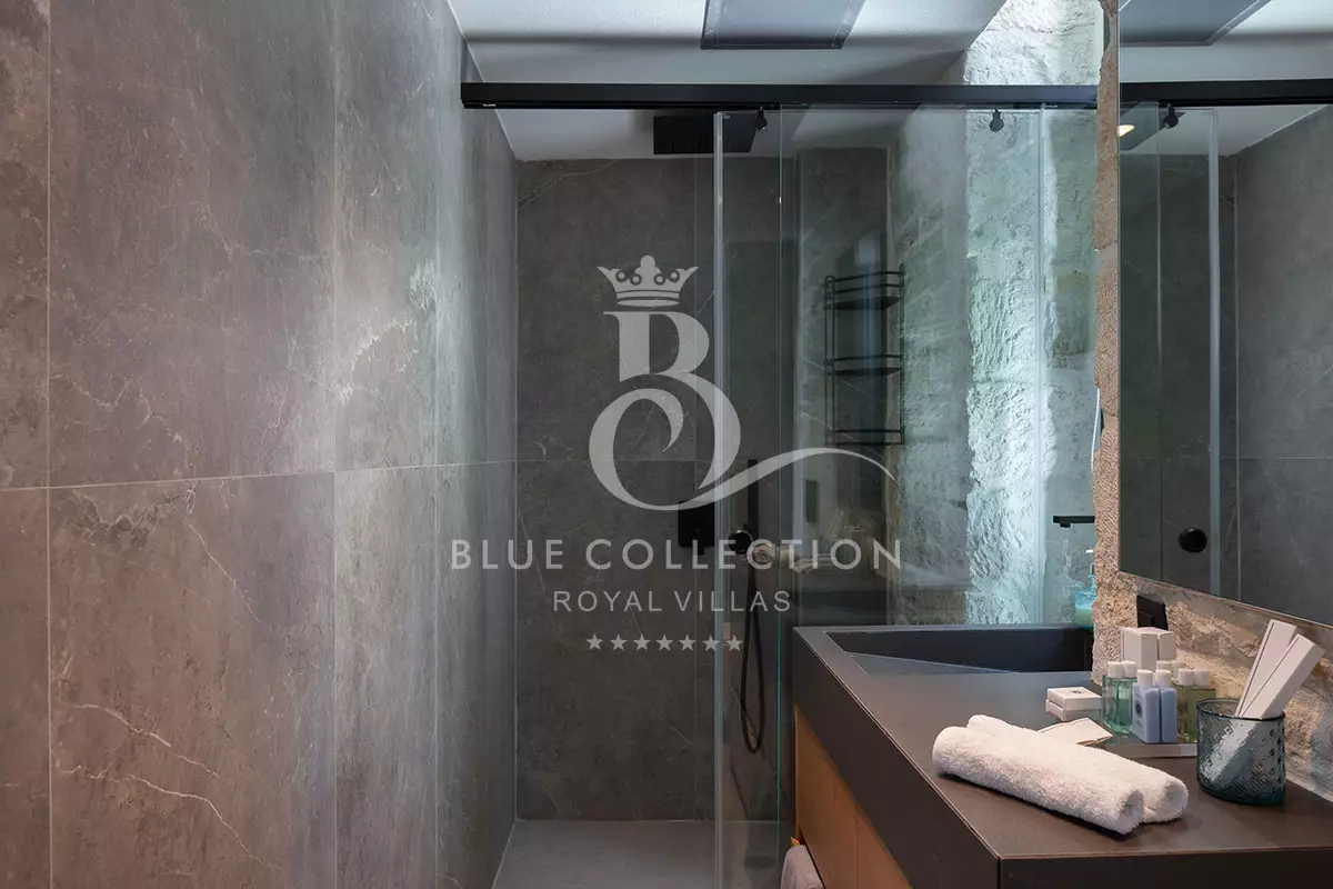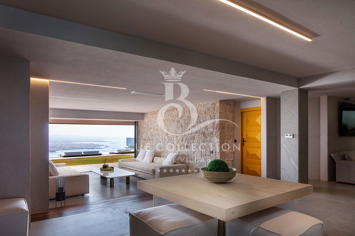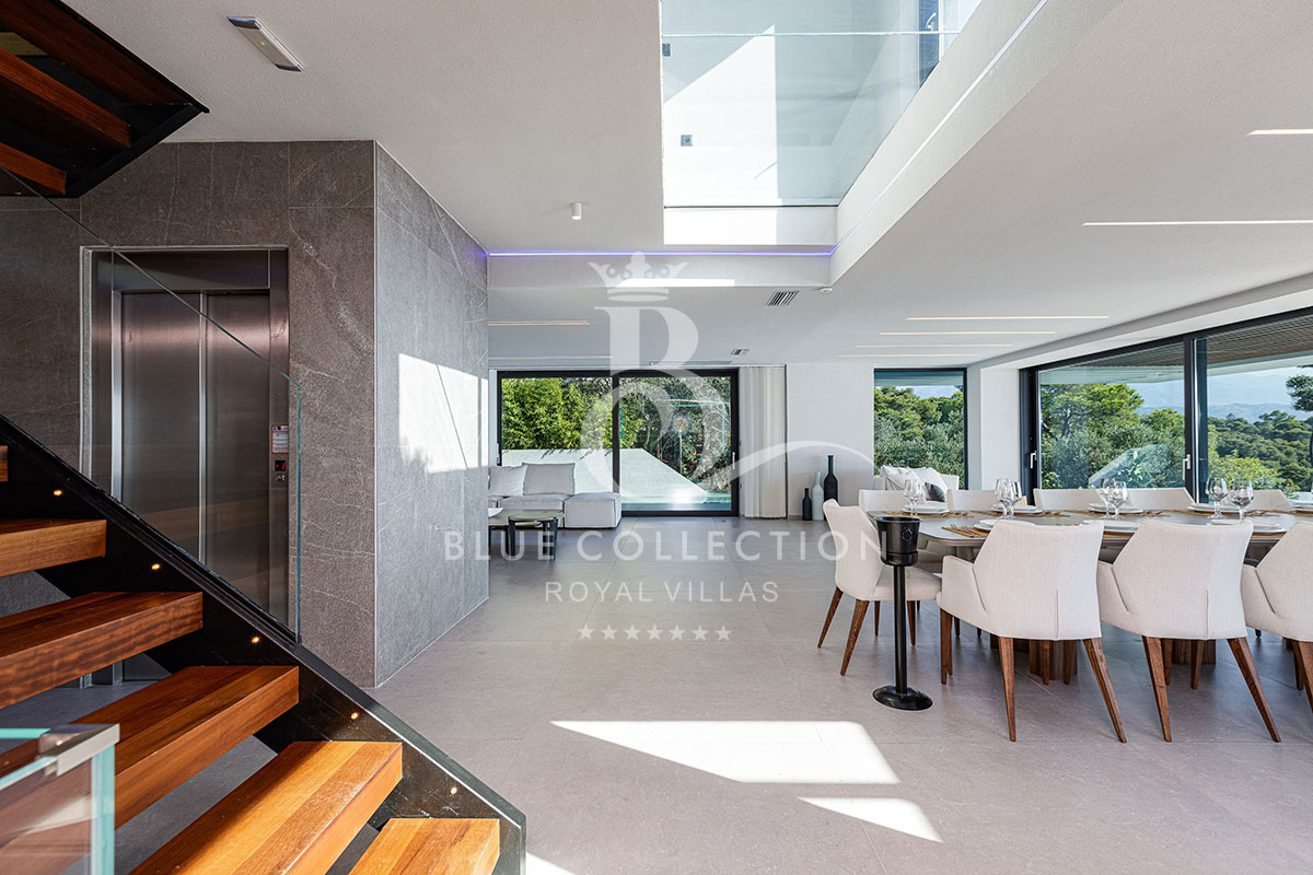 Villa CRT-34 is divided over four levels of exquisite design, covering 410 sq.m. in total and it accommodates 12 guests in its 6 ensuite bedrooms. An elevator is also available for access to each level.