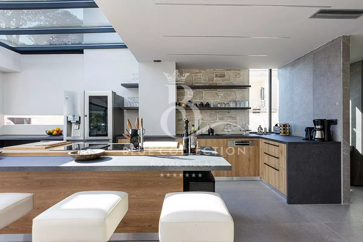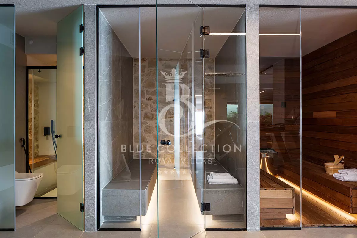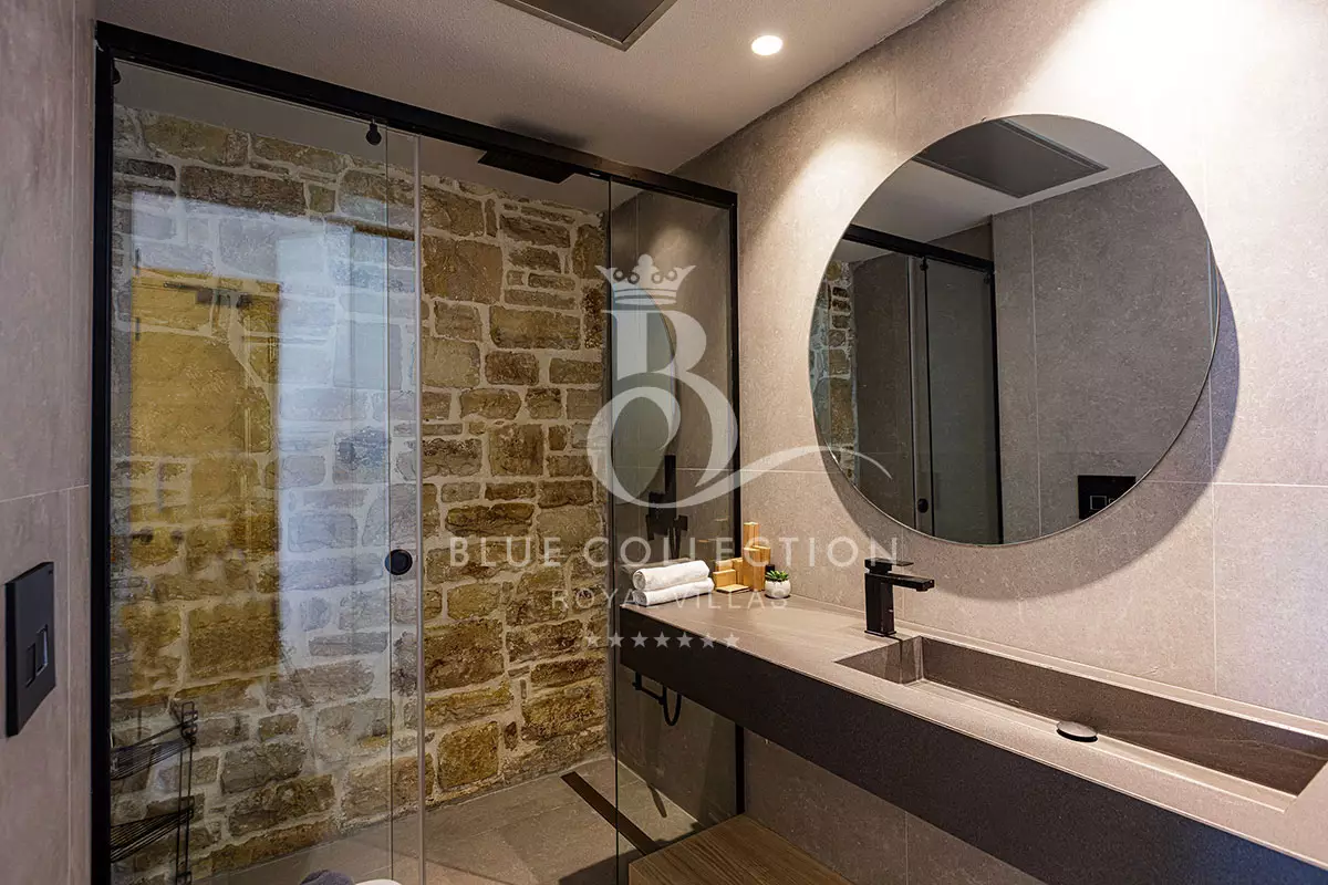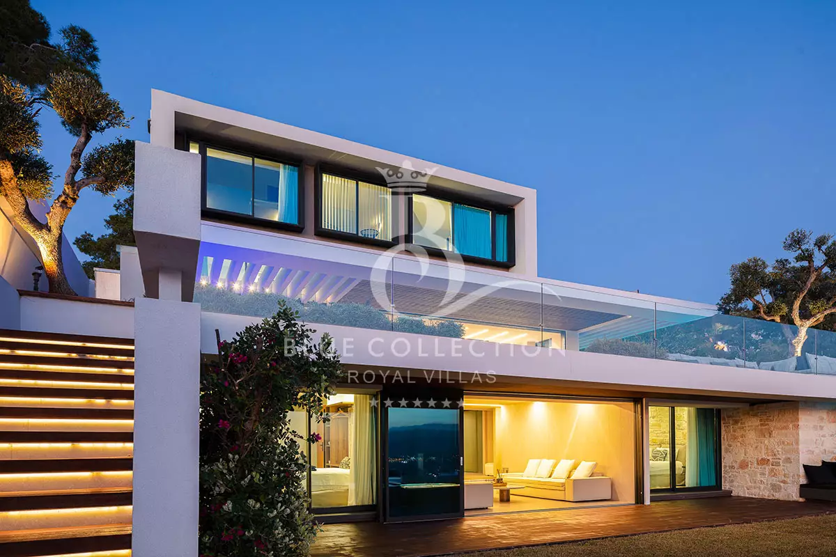 Villa CRT-34 is divided over four levels of exquisite design, covering 410 sq.m. in total and it accommodates 12 guests in its 6 ensuite bedrooms. An elevator is also available for access to each level.