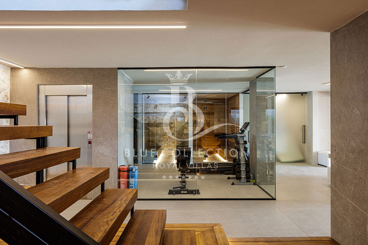 The 410 sq.m. interior offers resort-like amenities including a fully-equipped private spa, fitness center, 3 kitchens, 2 living areas and playroom.