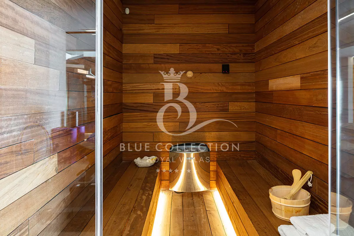 - The range of facilities provided at the property, including spa area with hammam, sauna and well-equipped gym, movie area with 75” Smart TV, Netflix and PS5, 2 pools one of which is heated with an additional charge and numerous sitting areas, indoors and outdoors