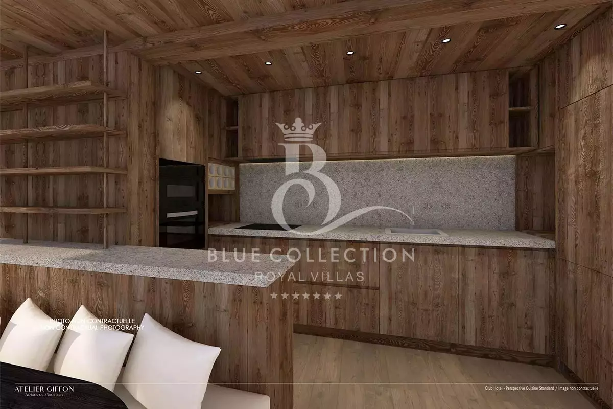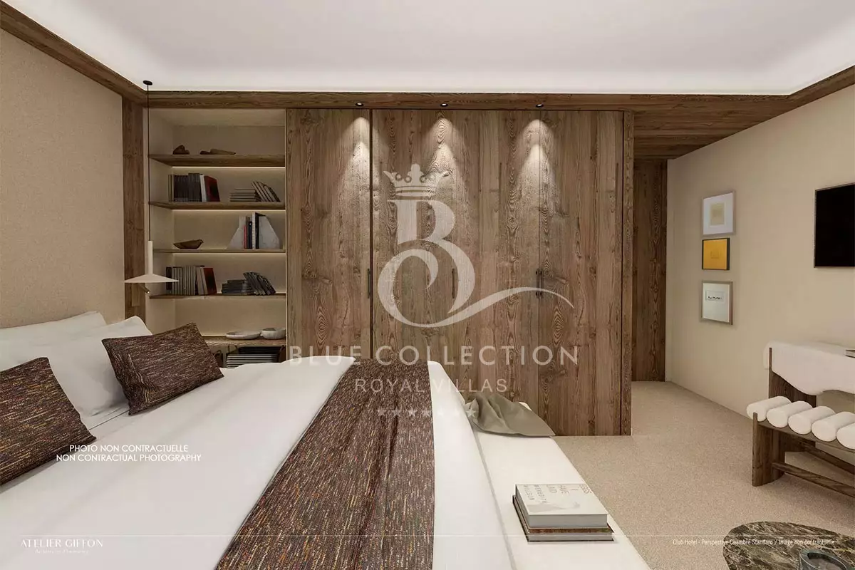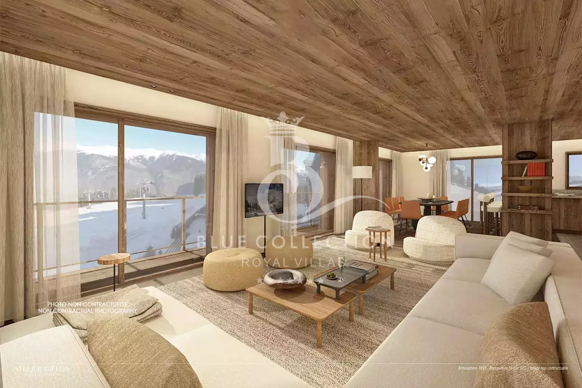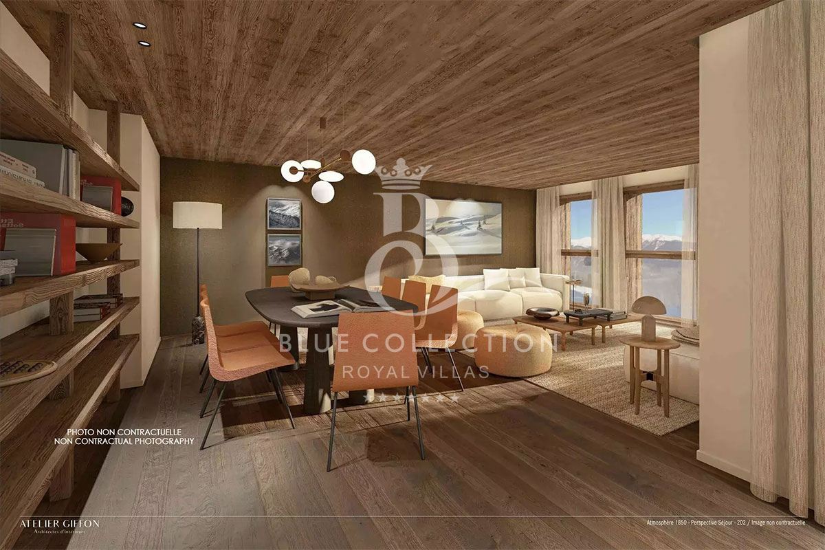 Within its wood and glass facades, the residence offers spacious accommodation with a timelessly elegant design that marries traditional chalet architecture and the latest alpine design trends.