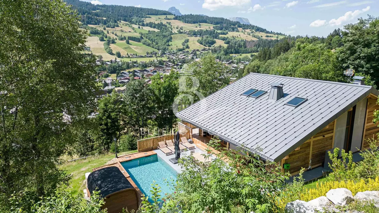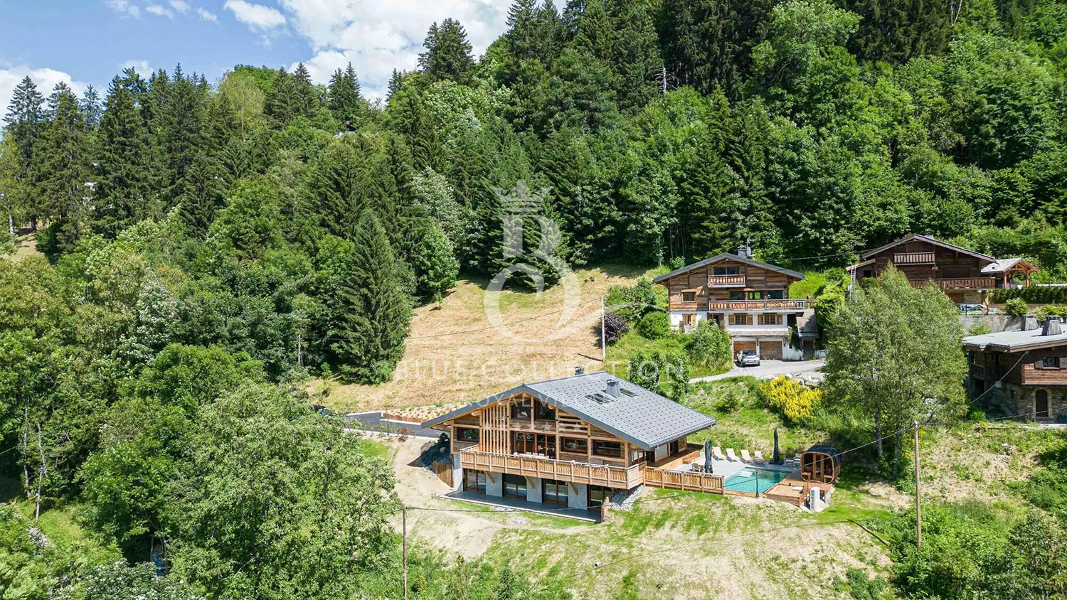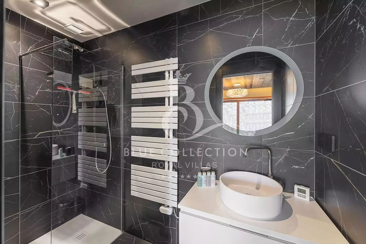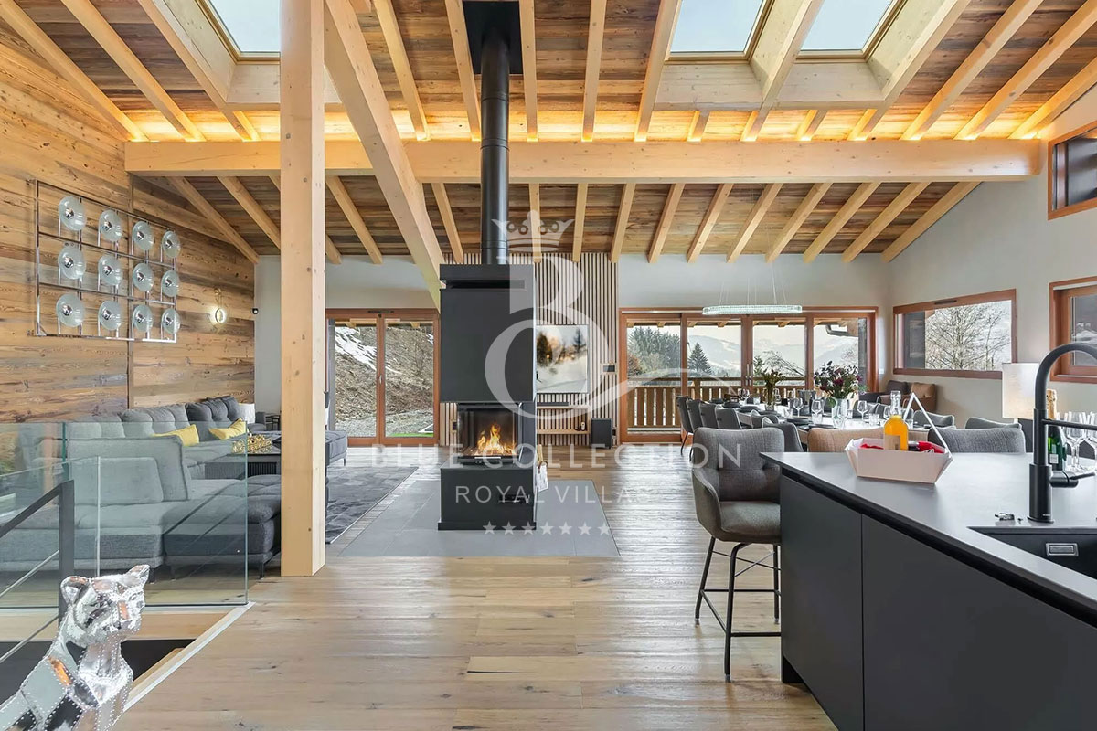 Chalet FMG-20 is distinguished by its numerous leisure areas, including a cinema room, a games area with table football and a sauna. A beautiful swimming pool is located on the outdoor terrace.