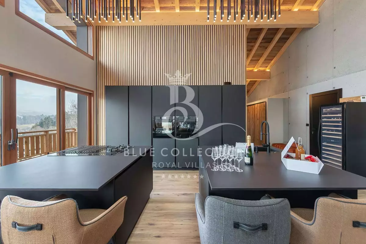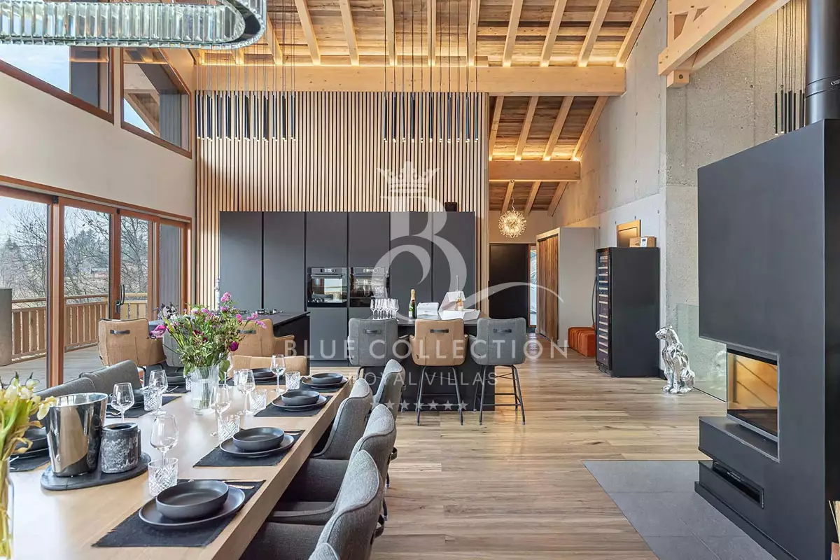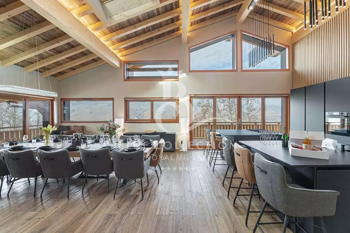In an elegant atmosphere combining alpine spirit and Scandinavian taste, the living area offers a lounge, dining room and contemporary kitchen.