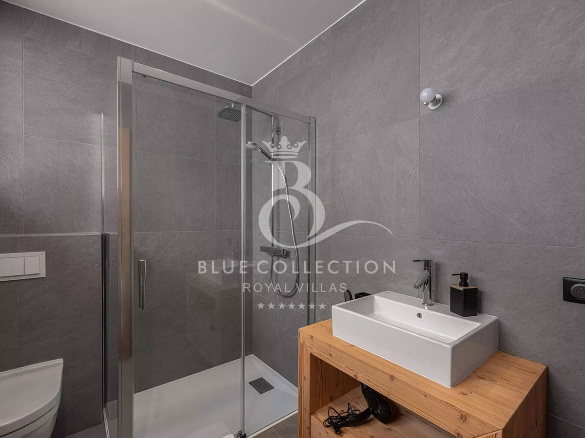 The 1st floor is dedicated to the living area, warmed by a fireplace and surrounded by a large balcony. The 2nd floor has four double bedrooms and a children’s bedroom. The whole complex can accommodate up to 12 people.