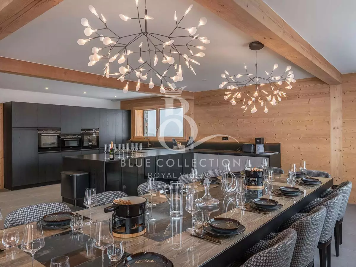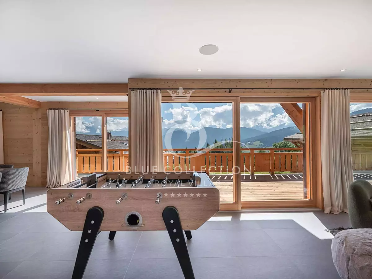 Spread over 378 sq.m., Chalet FMG-27 features a gym on the ground floor and a relaxation area with a swimming pool, jacuzzi and sauna.