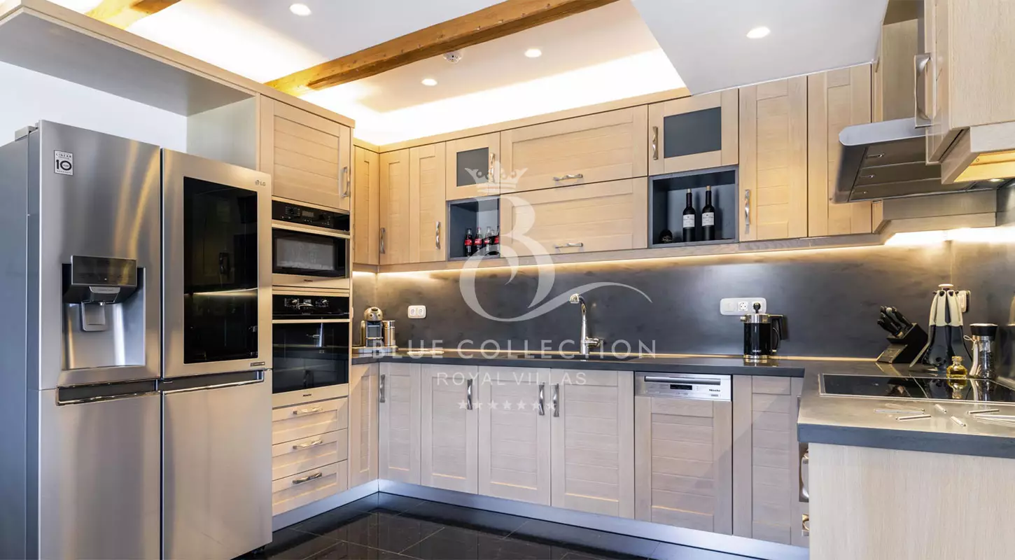 Outdoors, the property is equally impressive, with a large pergola, an infinity pool blending seamlessly with the horizon, a fully equipped bar, a chic lounge area, and a tennis table for moments of fun and relaxation.
