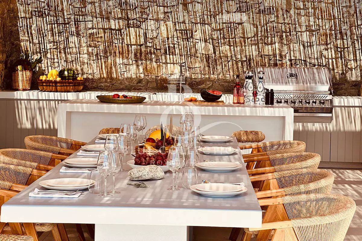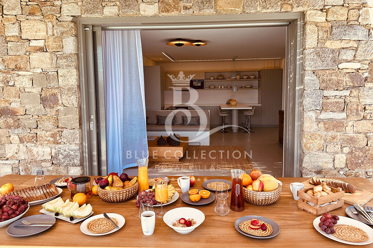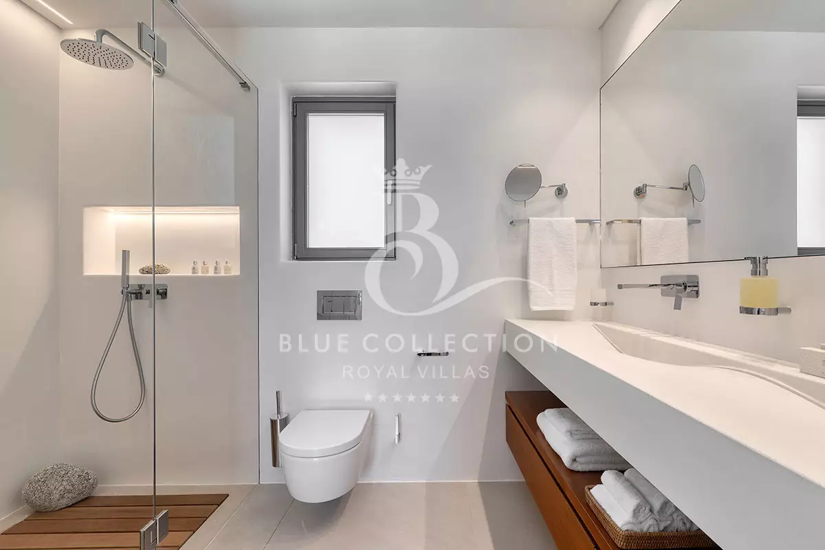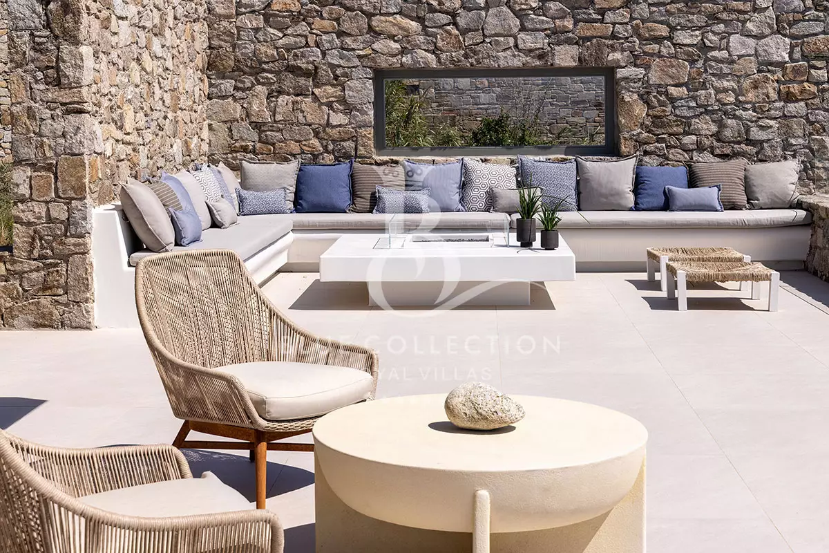 Enjoy all the modern comforts of the unique newly constructed Villa, open the balcony doors of the 7 extra spacious Suites and feel the Μykonian breeze touching you.