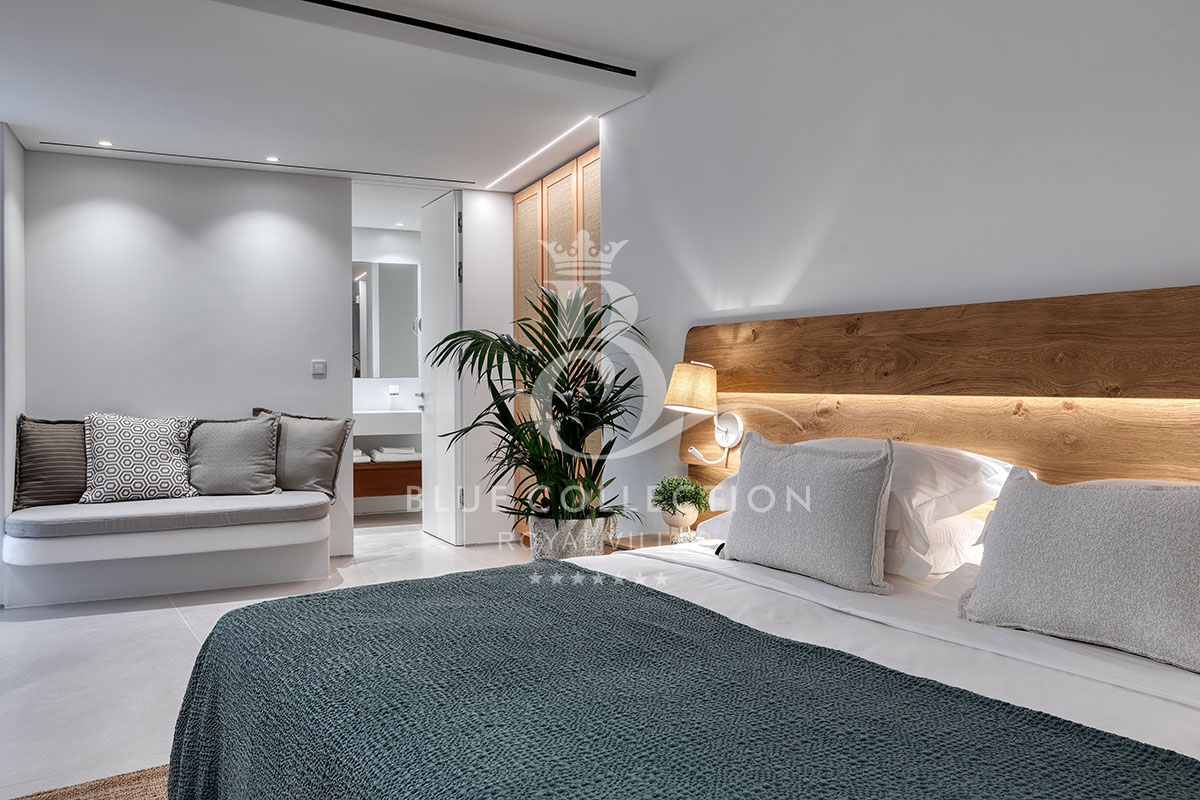 The unique, newly built Villa ADR-9 offers unlimited possibilities for relaxation within its expansive 700 sq.m. indoor area. Seamlessly blending Mykonian tradition with contemporary elegance, this stunning property promises an unforgettable stay in its 7 spacious suites, each featuring a luxurious king-size bed and ensuite bathroom.