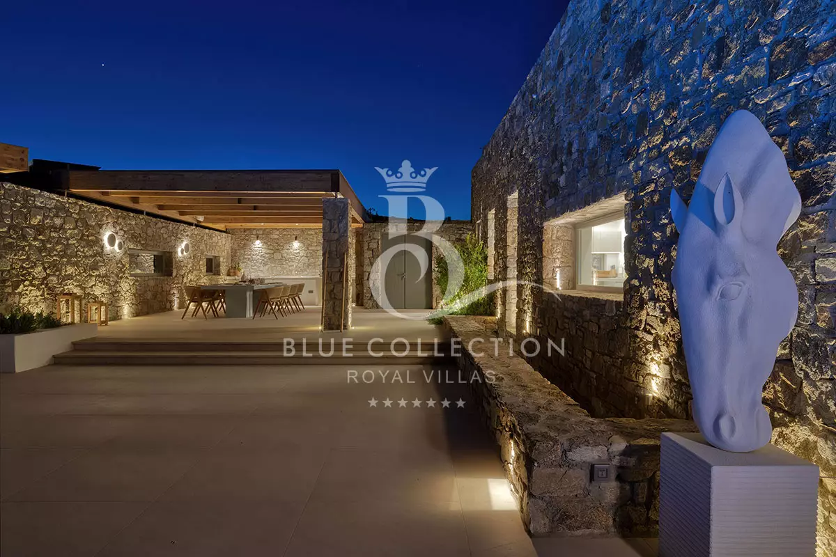 Crafted with locally sourced materials, it offers an unparalleled living experience within its expansive 700 sq.m. interiors and a magnificent 500 sq.m. outdoor living area, all set within a vast 4.000 sq.m. plot.