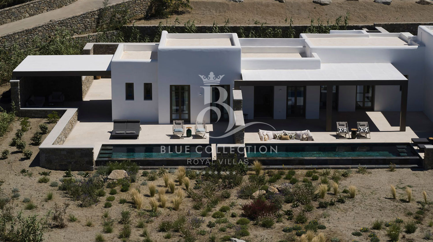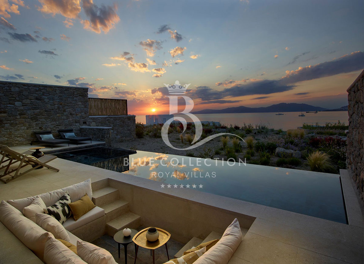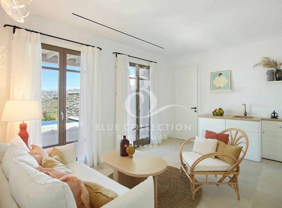 Located at Megali Ammos beach, the Villa offers breathtaking views of the well-known Windmills, the white washed Mykonos center and the deep blue of the Aegean Sea, while allowing guests to take in the serenity of the unspoiled location.