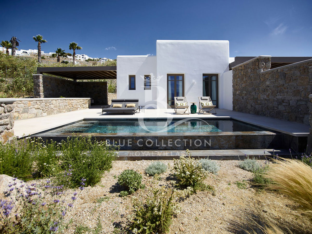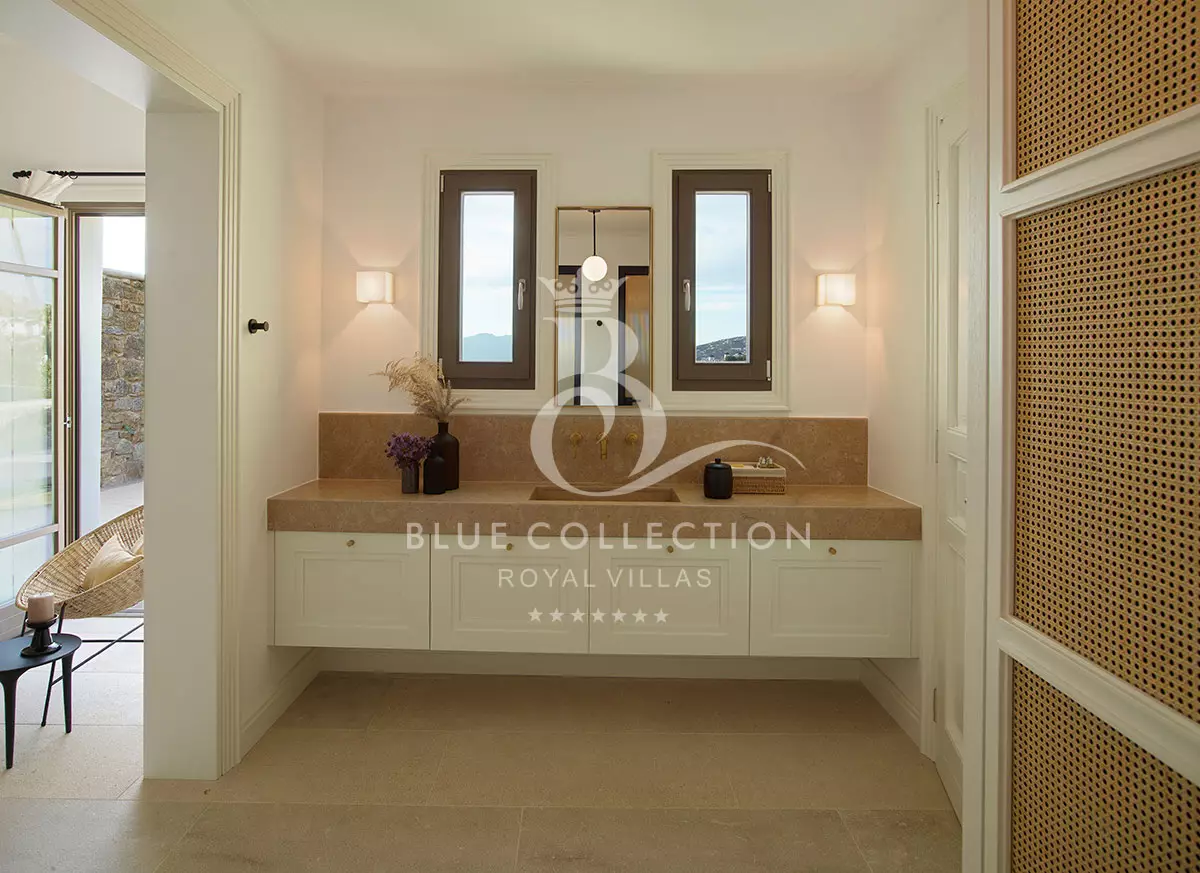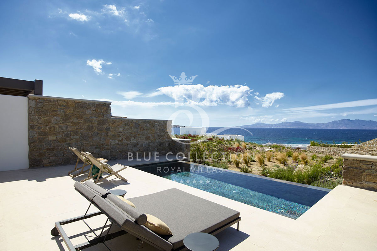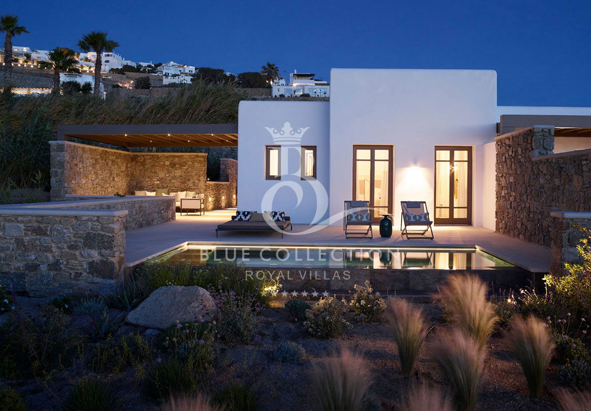 Located at Megali Ammos beach, the Villa offers breathtaking views of the well-known Windmills, the white washed Mykonos center and the deep blue of the Aegean Sea, while allowing guests to take in the serenity of the unspoiled location.