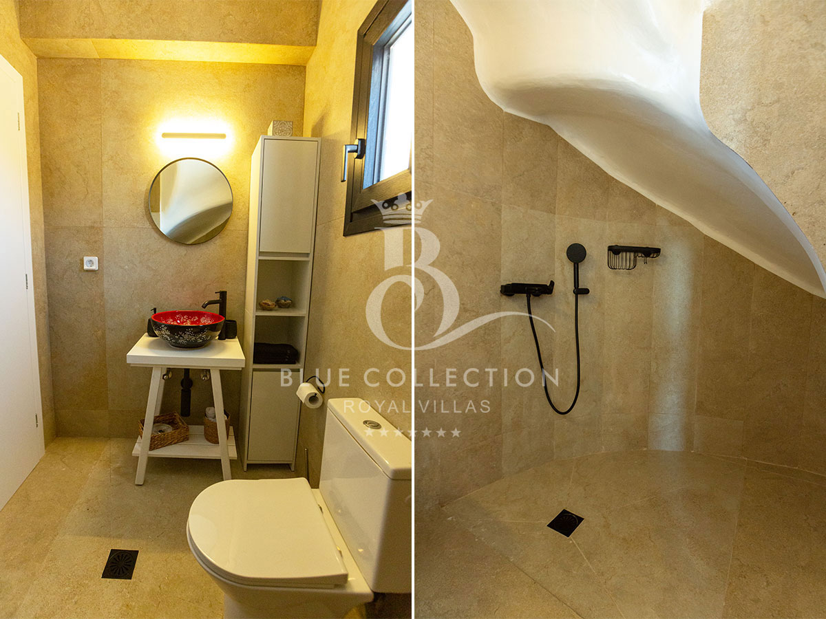 Villa FTL-27 embodies the traditional Greek island style with stunning rock details and pristine white walls.