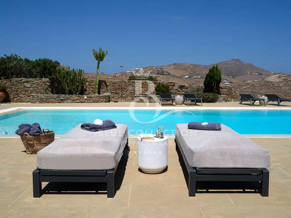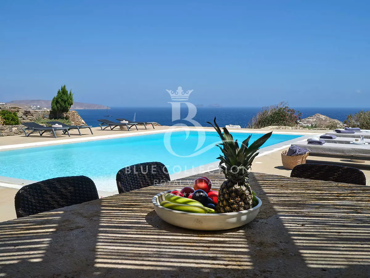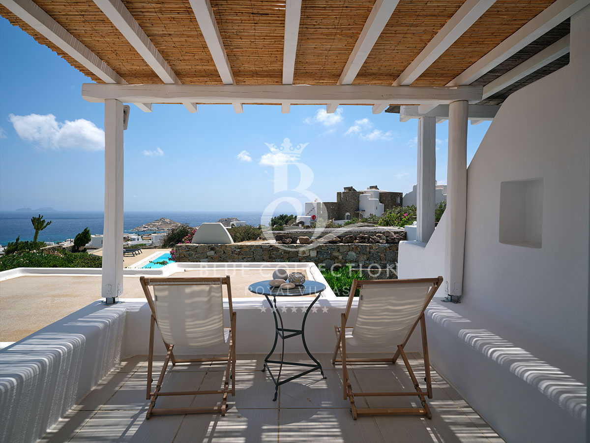A gorgeous Villa for Rent on Mykonos, that enjoys panoramic views of Kalafatis bay.