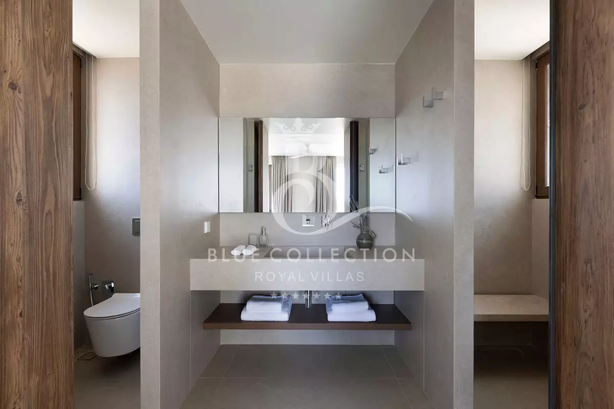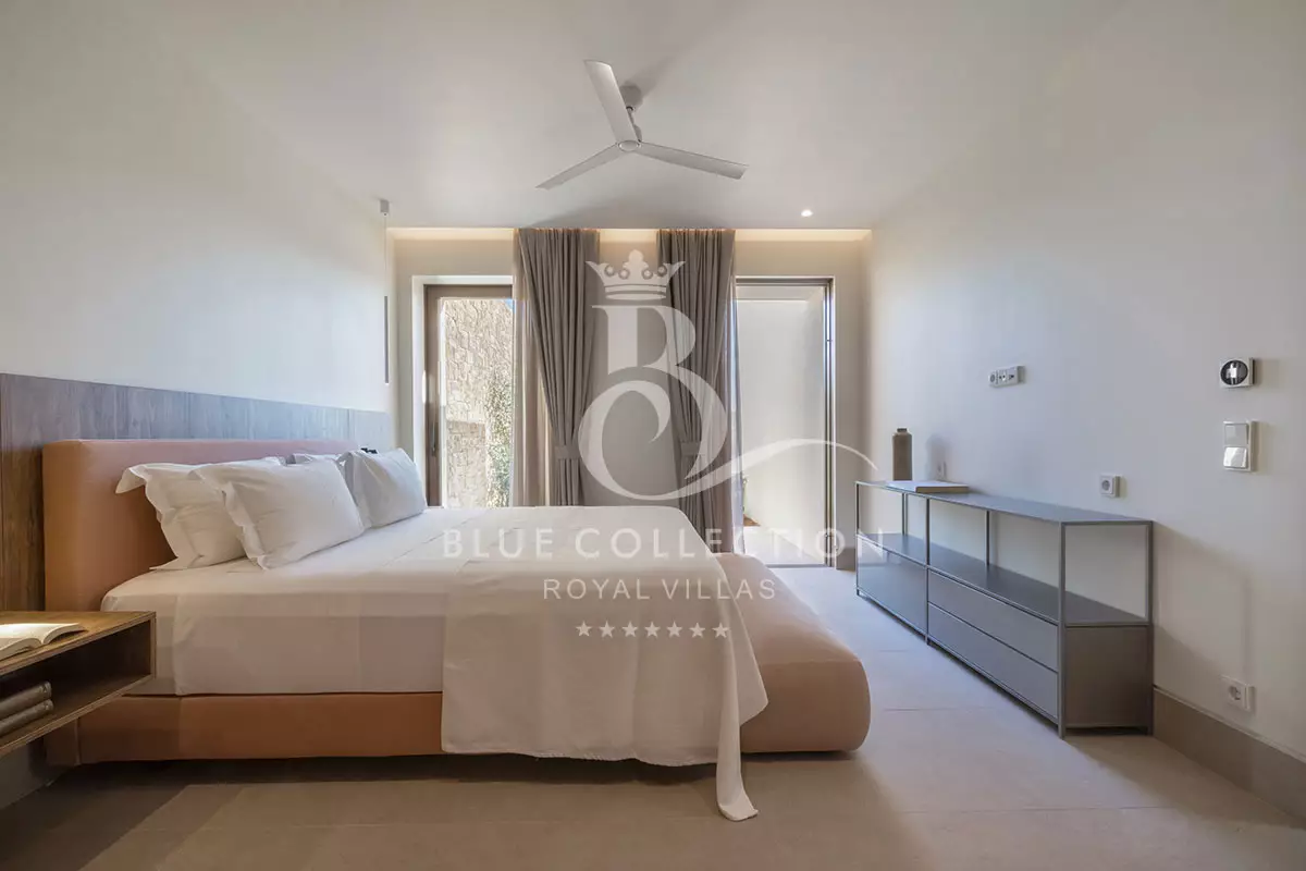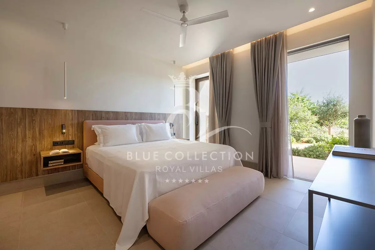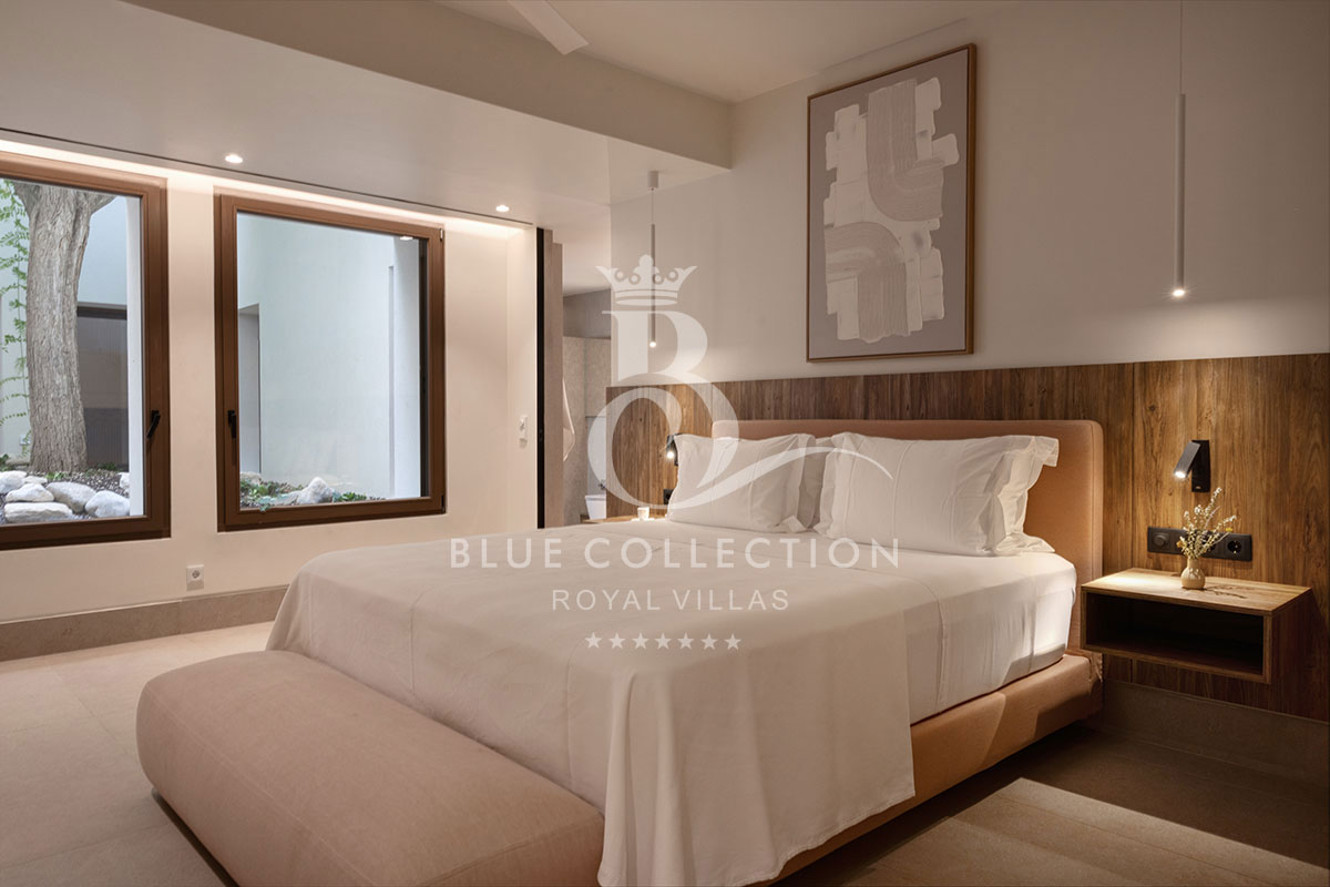 Its proximity to the pebble beach of Aliki village, together with the expansive pool, allows guests the luxury of effortless swimming throughout the day — and even the magic of a moonlit swim at night.