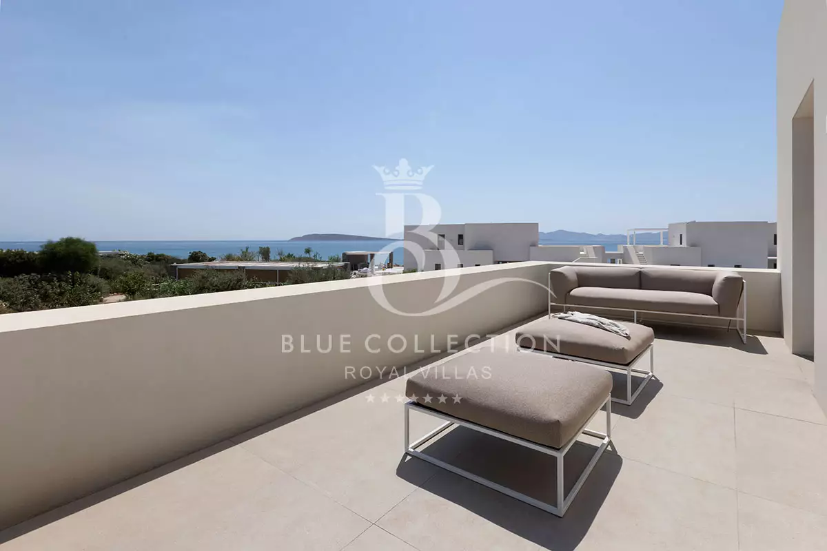 Just 20 meters from a crystal-clear pebble beach and sheltered from the Aegean winds, Villa PRS-57 lies a few minutes away from the charming village of Aliki, just a bike ride away, through a safe road, even for children.