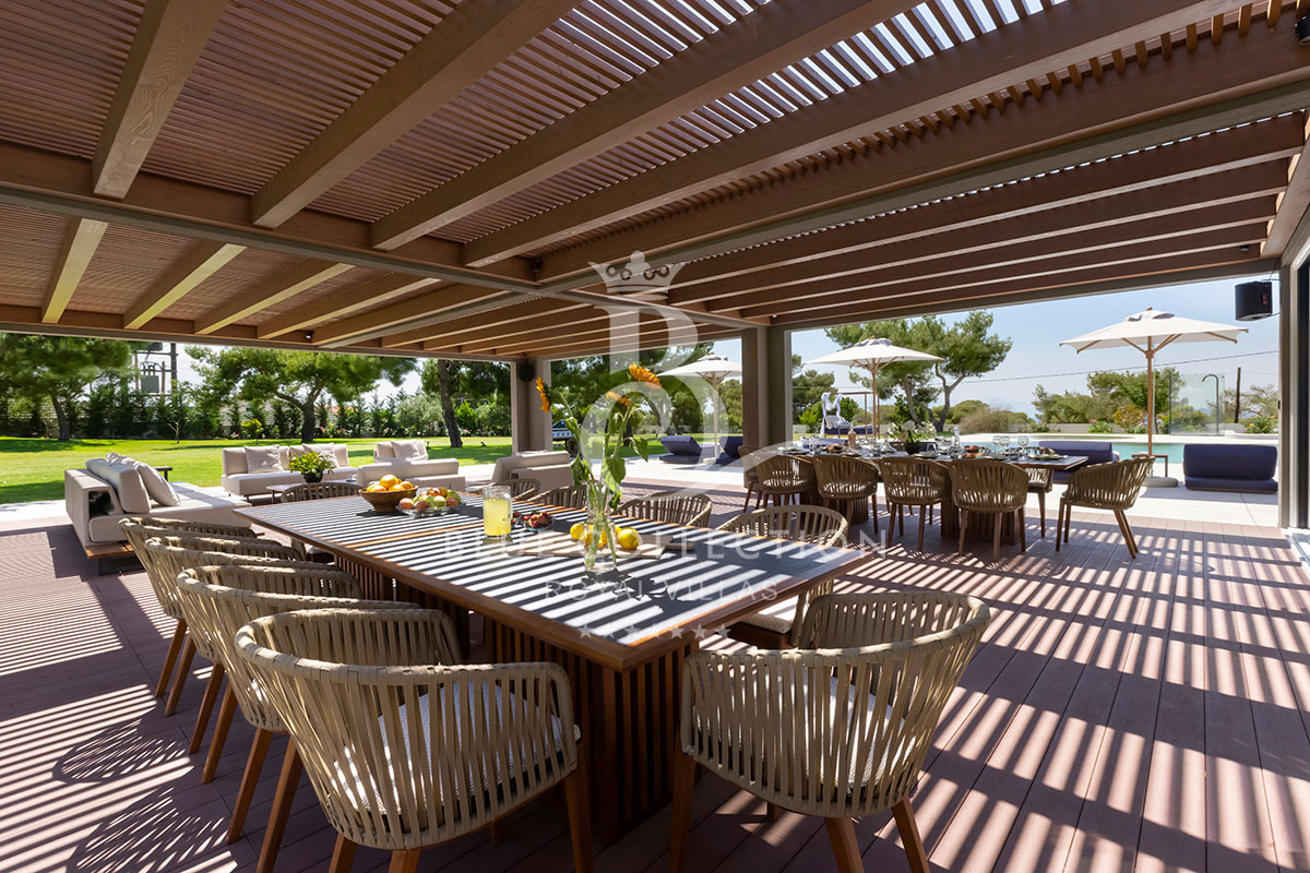 An indicative feature is that Villa PLD-1 meets all high specifications and is also available for large groups, hosting events or even television productions, as its spaces can accommodate a large number of people, without sacrificing the enjoyment of each individual’s privacy and maximum satisfaction of all guests.