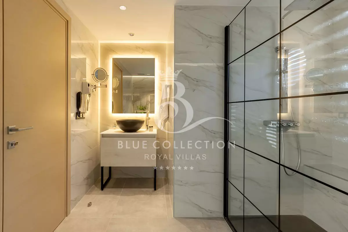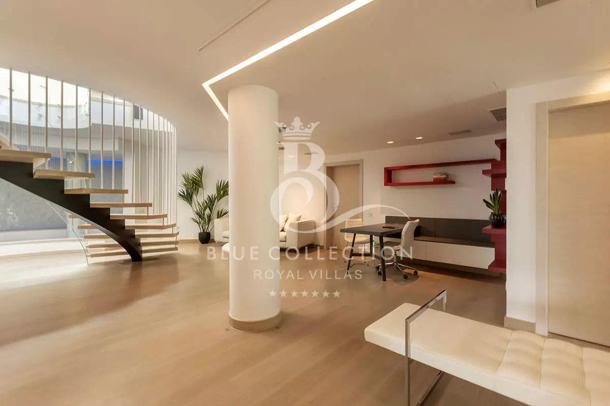 On the ground floor there is a playroom with table tennis, billiards as well as a 65″ TV to enjoy and relax. For the more energetic there is a gym with an aerobics area, a study room and 4 master bedrooms with hydro massage.