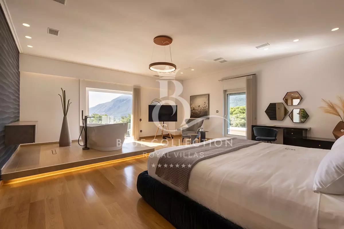 This Villa for rent in Peloponnese, is the epitome of luxury! An all-inclusive Villa perfect for large groups, situated in Loutraki, Greece.
