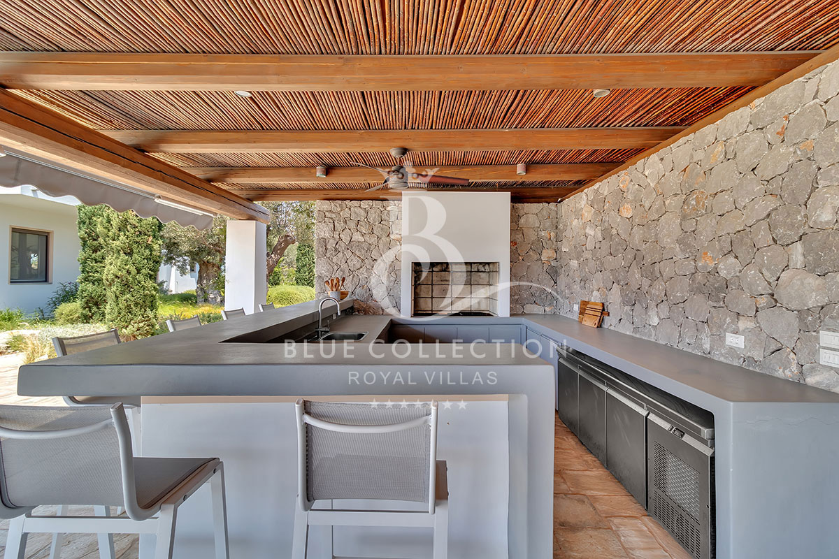 Outside, PPH-5 Villa’s lush garden offers a peaceful haven for guests to relax and entertain. The beautifully landscaped grounds feature a large pergola for shaded lounging, a panoramic swimming pool, and a barbecue area perfect for outdoor dining.