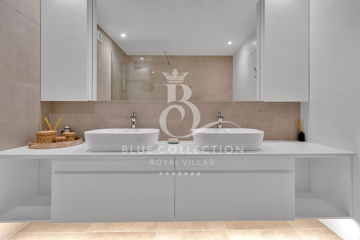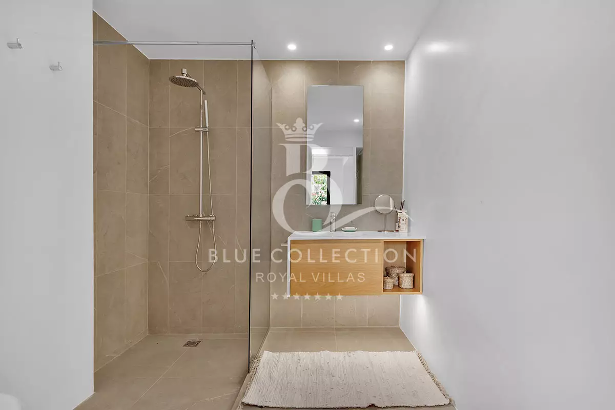 The lower level of the Villa is designed for both relaxation and privacy. It offers four spacious, beautifully furnished bedrooms, each with its own en-suite bathroom and direct access to the lush garden, allowing guests to step outside and enjoy the peaceful surroundings at any time.
