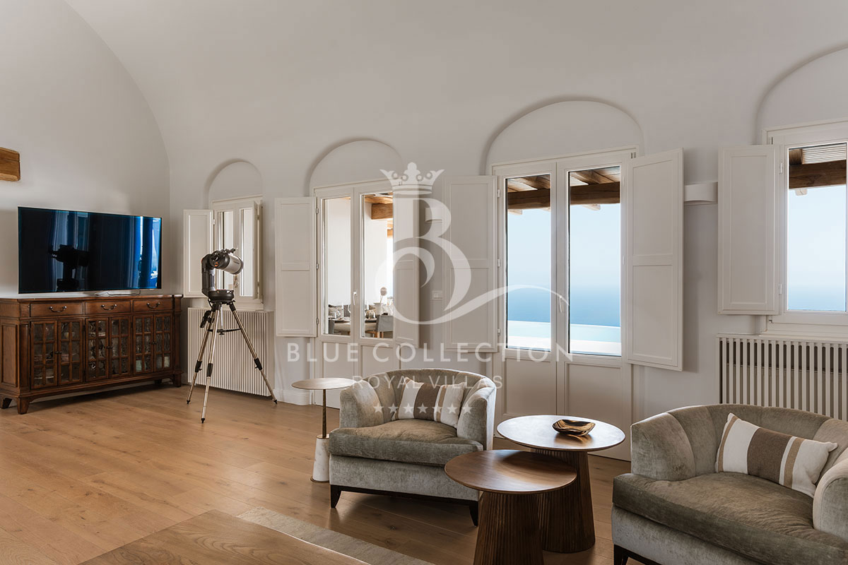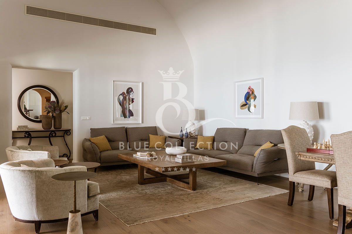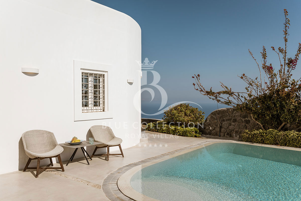 SNT-1 takes luxury villa living to a whole new level. One of the largest and most prestigious properties on Santorini Island, it offers breathtaking views of the Aegean Sea. This hidden gated retreat ensures complete privacy away from the crowds, while being ideally located in Imerovigli, just 3 kilometers from Fira, the capital of Santorini.