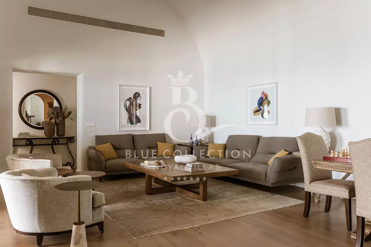 A haven of elegance and refinement, SNT-1 radiates magnificence in every detail. Spread across three levels, it features nine luxurious bedrooms, eight en-suite bathrooms, and two fully equipped kitchens. Earth-toned furnishings with a vintage character and minimalist lines create a harmonious, stylish atmosphere, enriched by warm wooden details and soft ambient lighting.