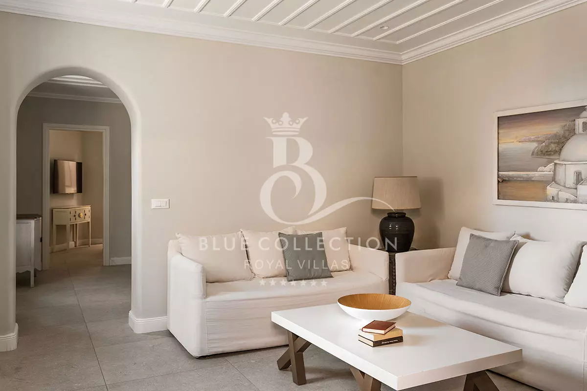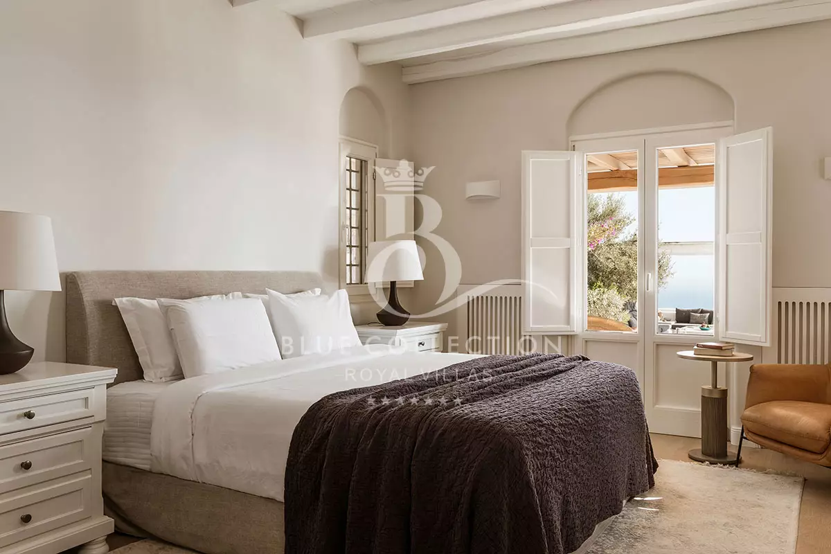 - 1 Master Bedroom with King size bed, A/C, en-suite bathroom with rain shower, walk-in closet, TV, hairdryer, safe box, access to main pool terrace, pool & sea view (Max. Capac: 2 people)
