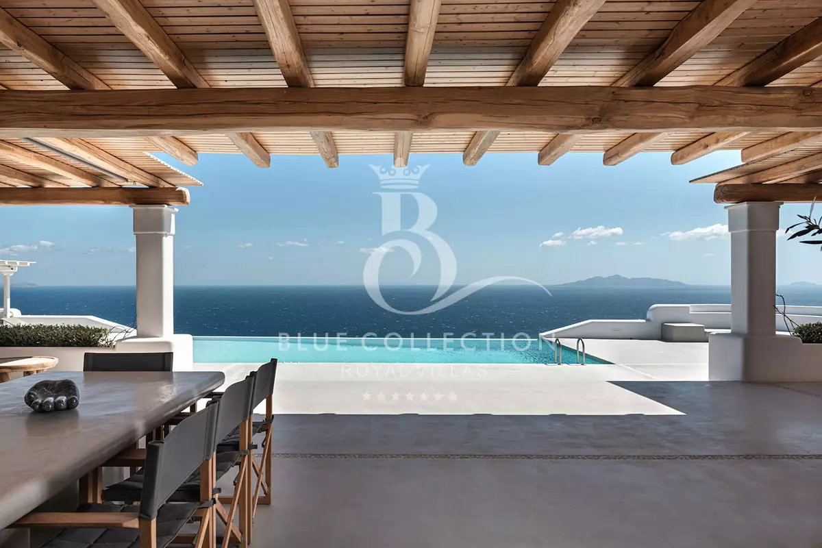 - Outdoor lounge and dining area with panoramic sea view