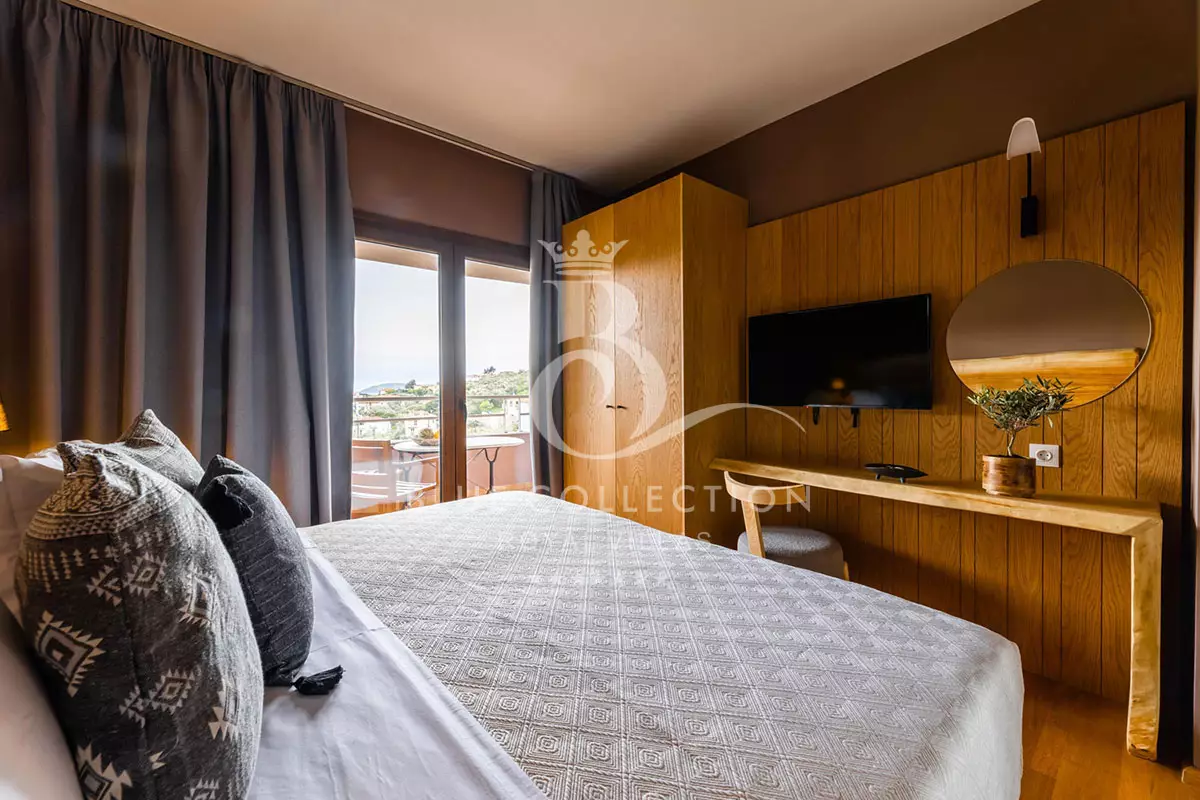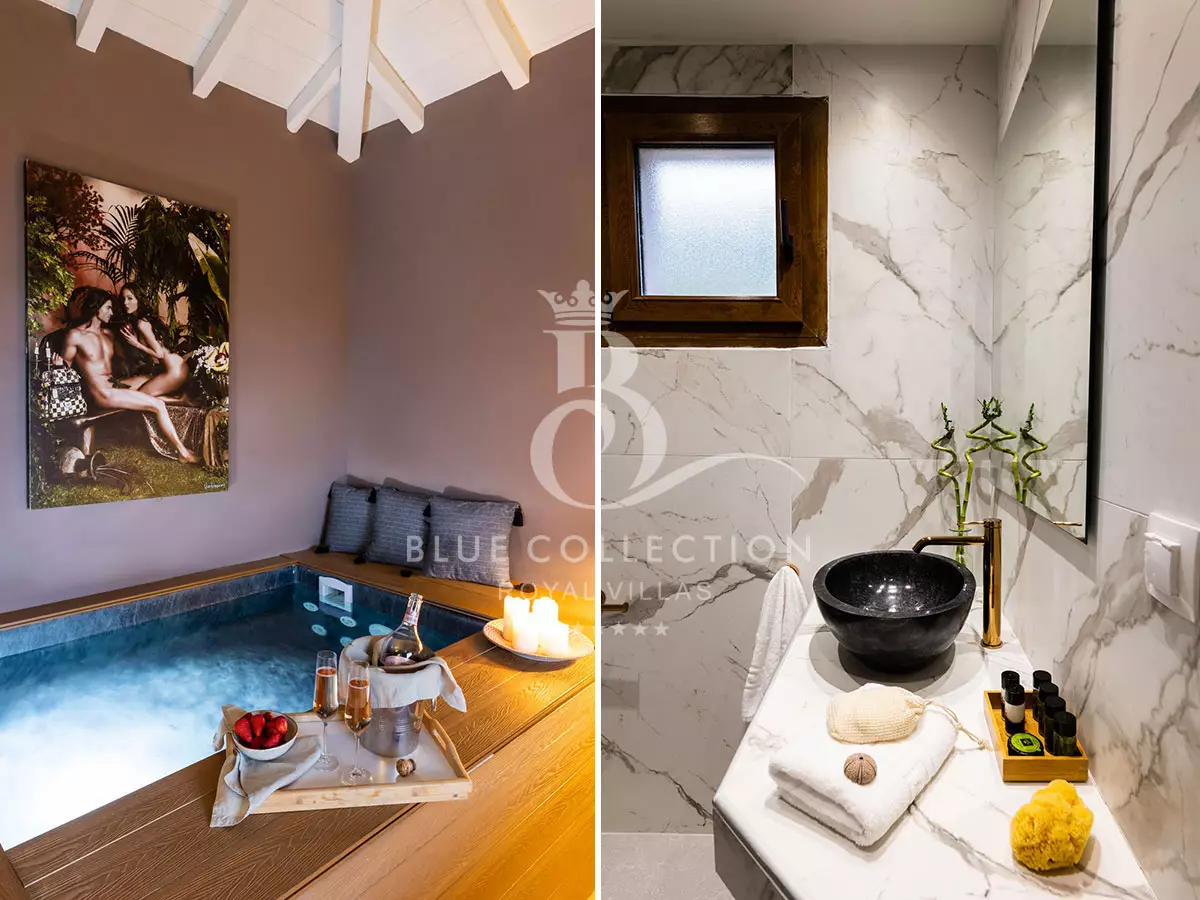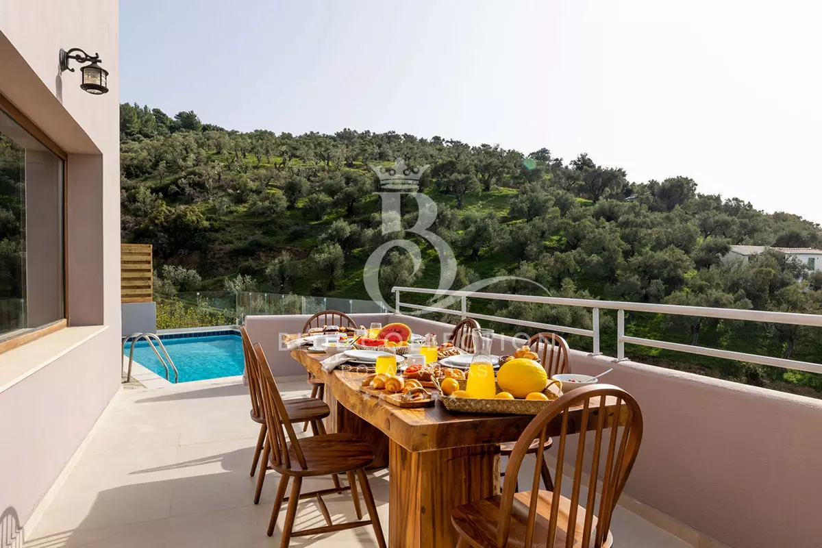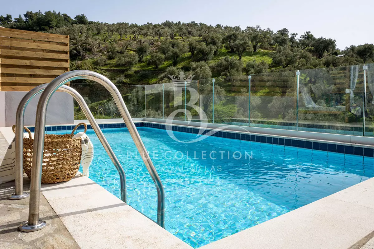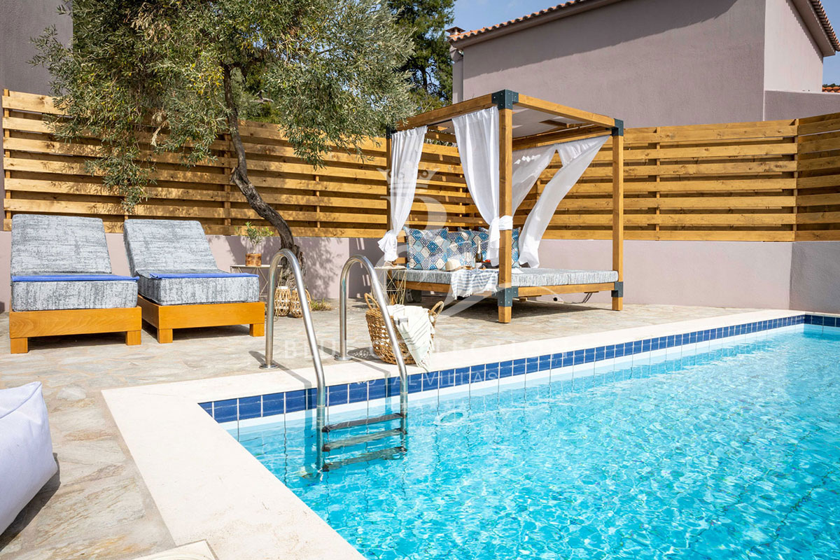 This Villa for Rent in Skiathos, seductively awakens all senses as you move from the unparalleled indoor comforts to private poolside pleasures, overlooking the infinite blue of the Aegean Sea